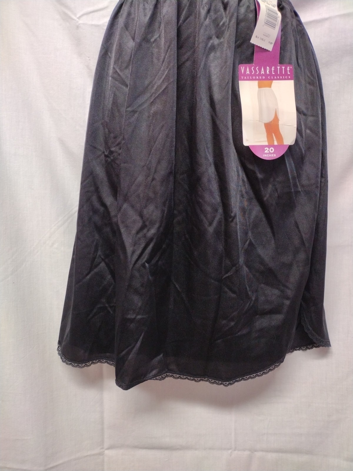 как выглядит VTG BLACK VASSARETTE HALF SLIP SZ MEDIUM 20" ST 11-122 NYLON W/LACE TRIM NWT. фото