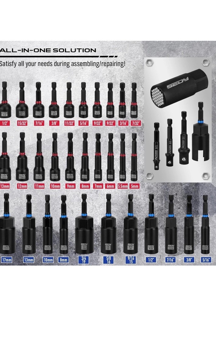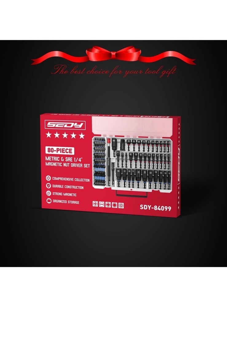 как выглядит 80-Piece Premium Magnetic Impact Nut Driver Set Metric SAE with Socket Adapter фото