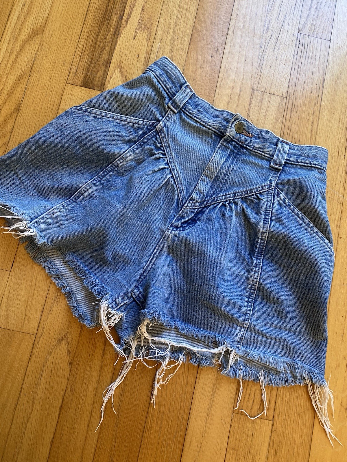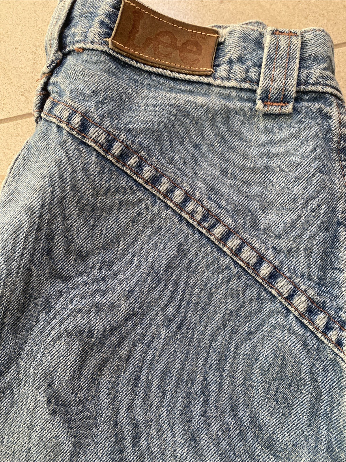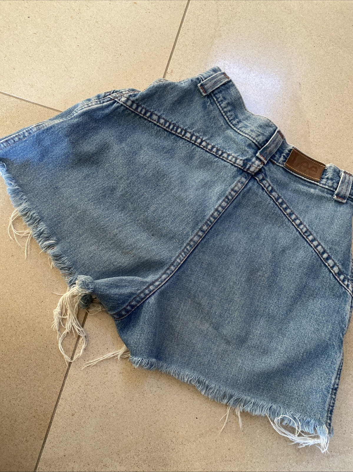 Vtg 80s Lee high waisted denim shorts womens size 7 pleated retro 25 waist SMALL