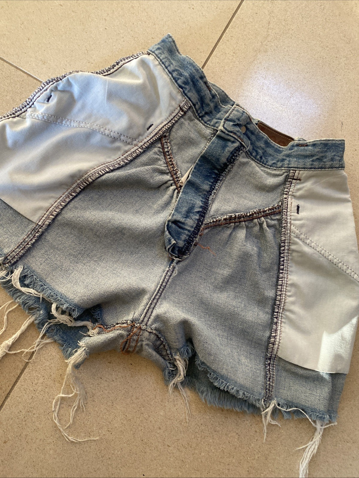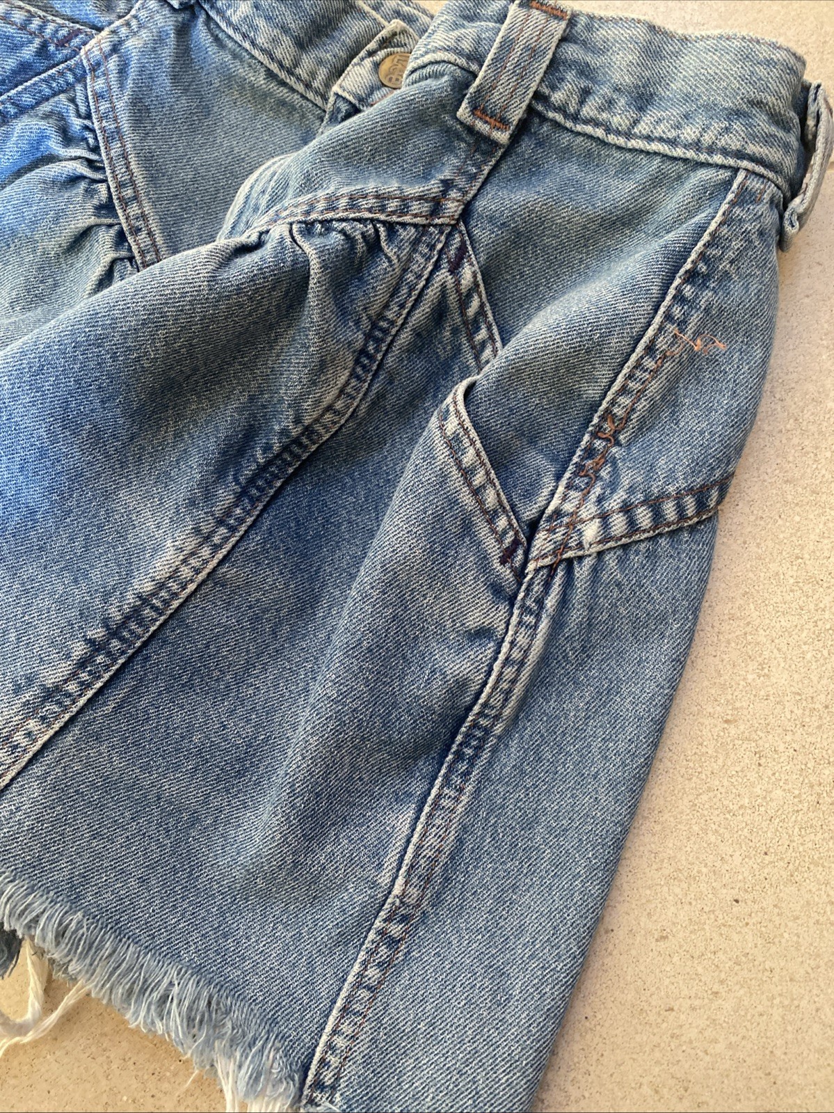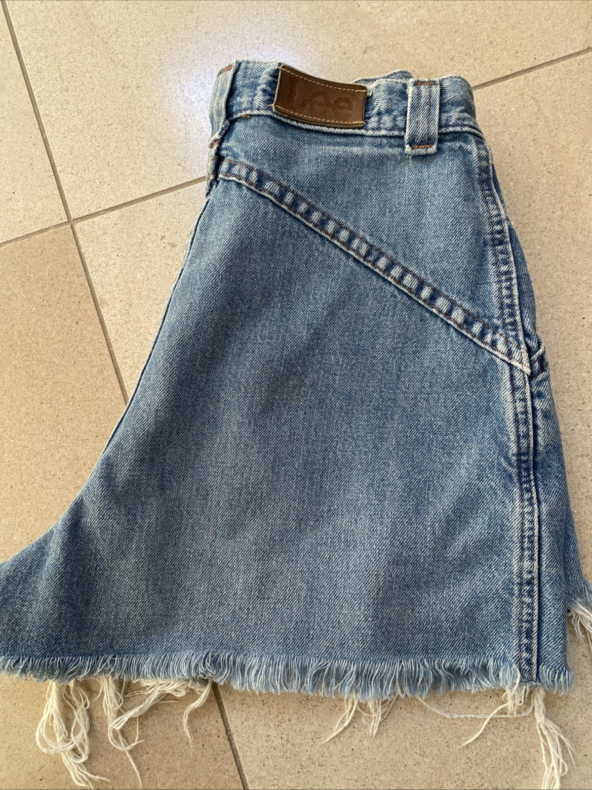 Vtg 80s Lee high waisted denim shorts womens size 7 pleated retro 25 waist SMALL