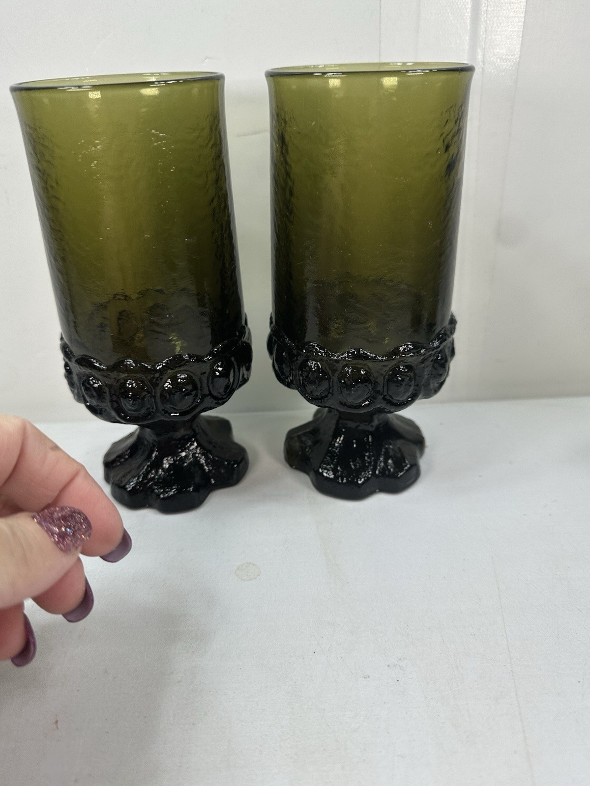 как выглядит Tiffin Franciscan Madeira Olive Green 6.5" Footed Tall Iced Tea Glasses Set of 2 фото