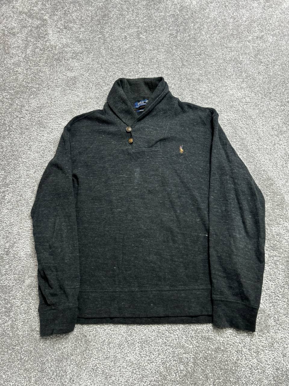 как выглядит Polo Ralph Lauren Sweater Mens Small Gray Cotton Estate Rib Shawl Neck Winter фото