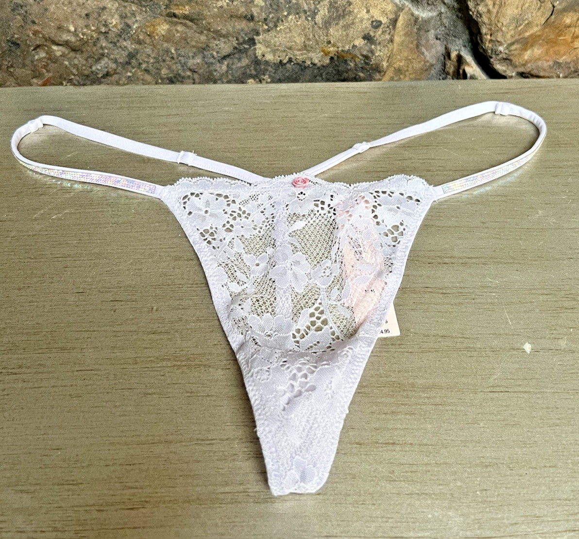 Victoria's Secret DREAM ANGELS Shine Strap Lace V-STRING THONG Panty Sz L NWT 24