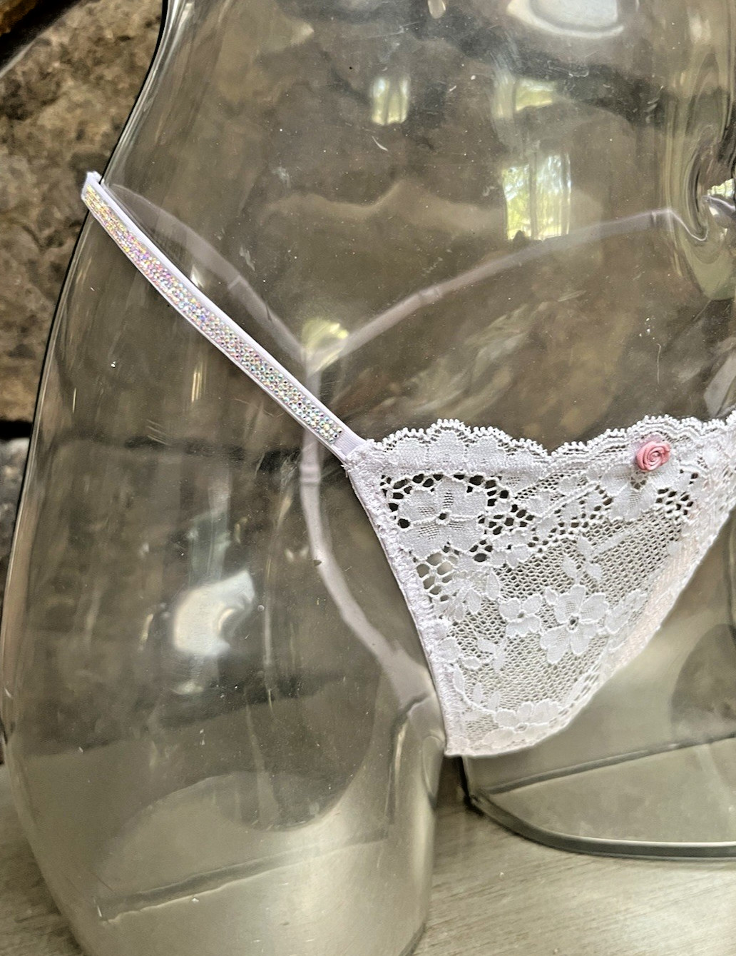 как выглядит Victorias Secret DREAM ANGELS Shine Strap Lace V-STRING THONG Panty Sz L NWT 24 фото