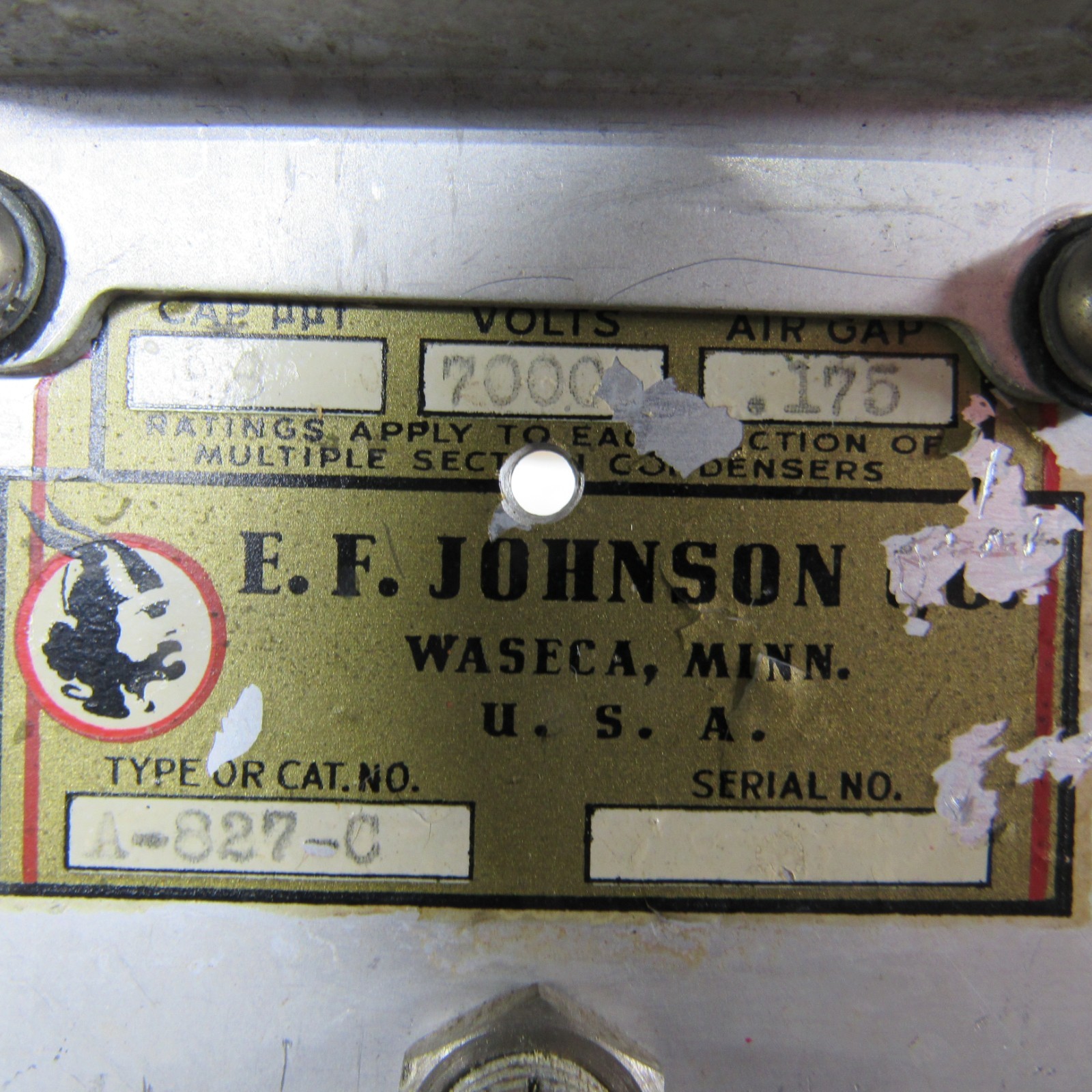 как выглядит VARIABLE CAPACITOR DUAL 100 pF 22 to 100 pF 1/4 in shaft JOHNSON A-827-C фото