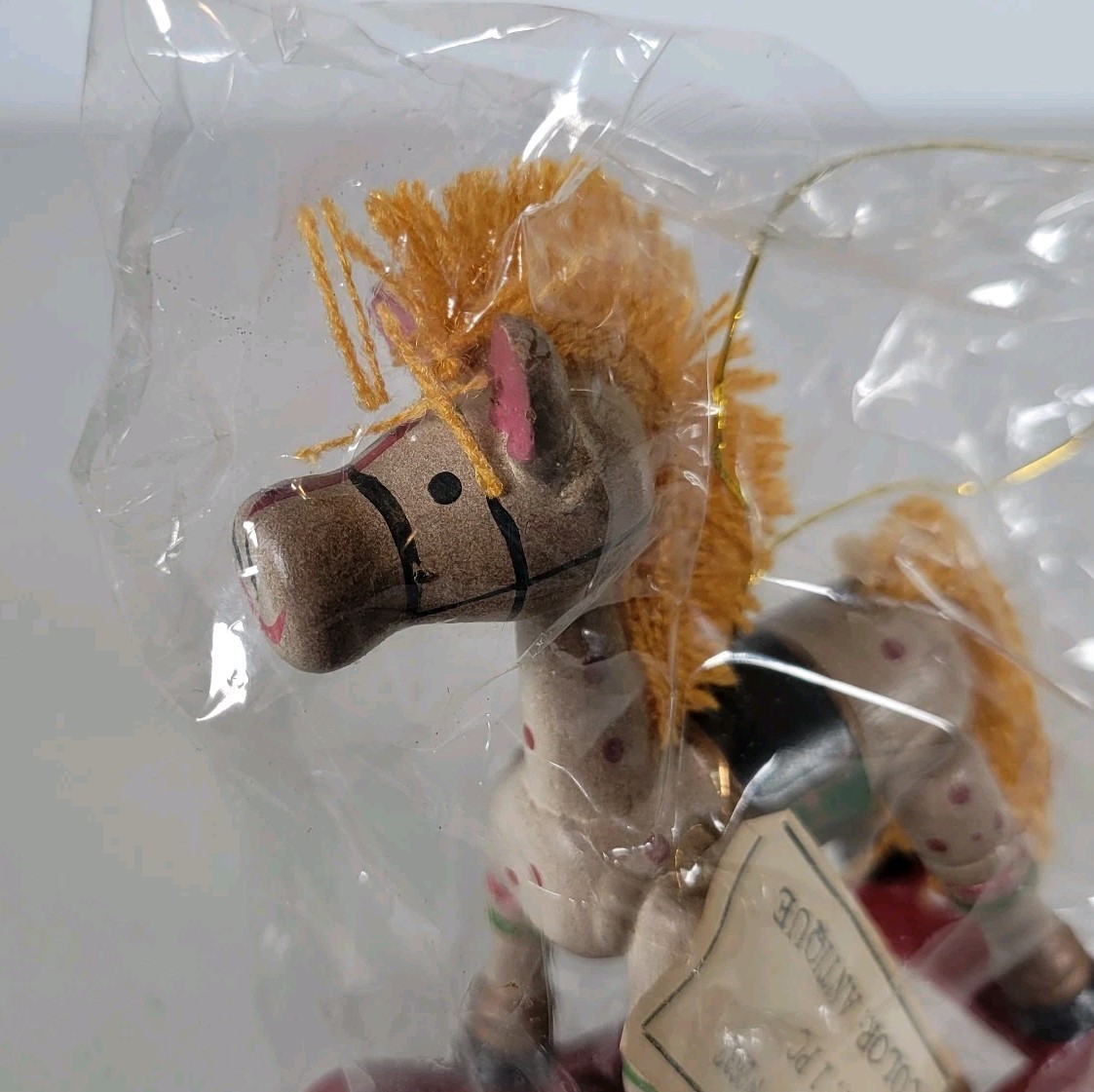 как выглядит Vintage Wooden Rocking Horse Christmas Ornament Taiwan W2637 фото