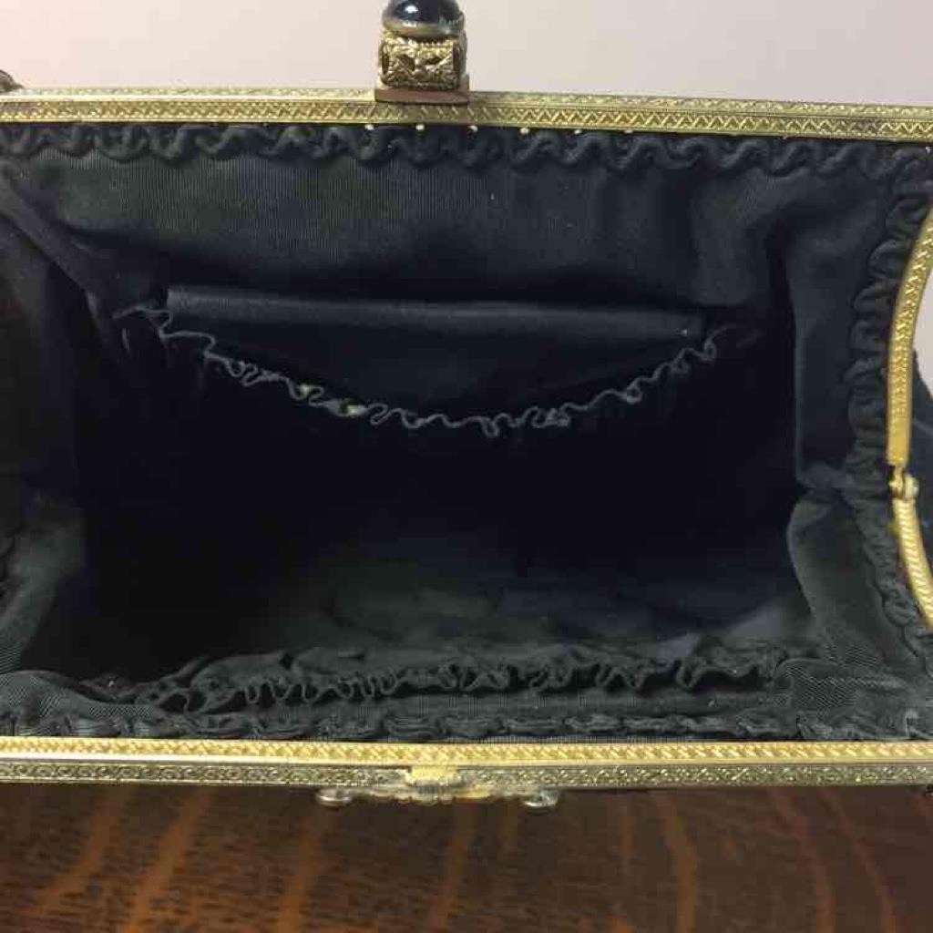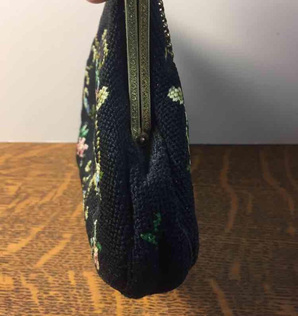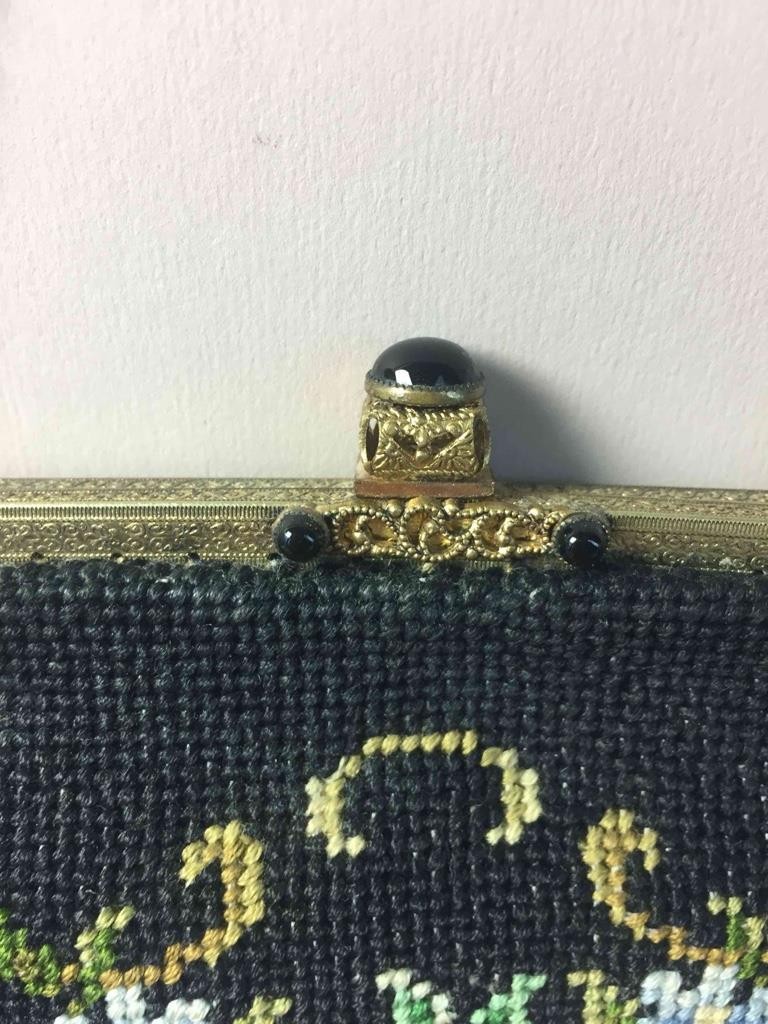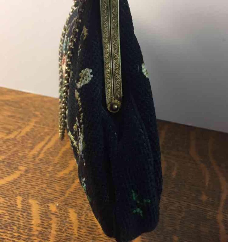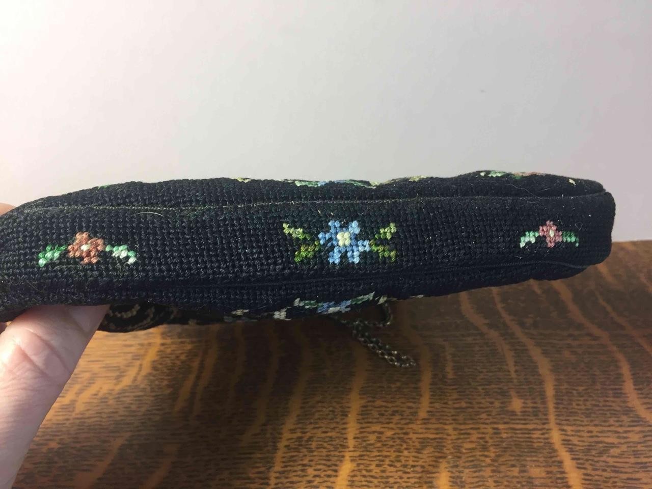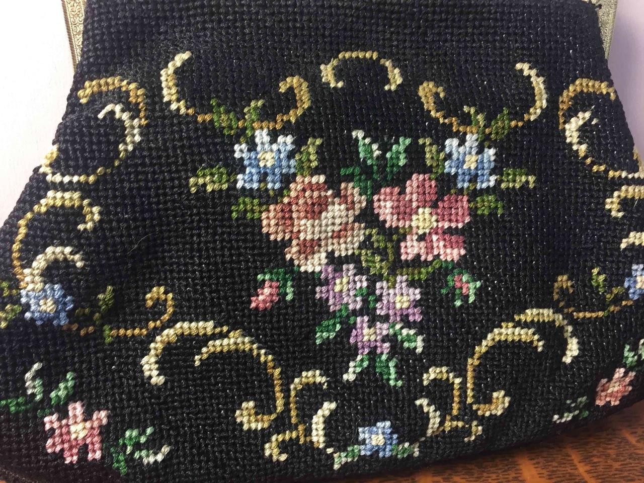как выглядит Vintage Tapestry Needlepoint Purse Floral Design Chain Handle Mirror Insert фото