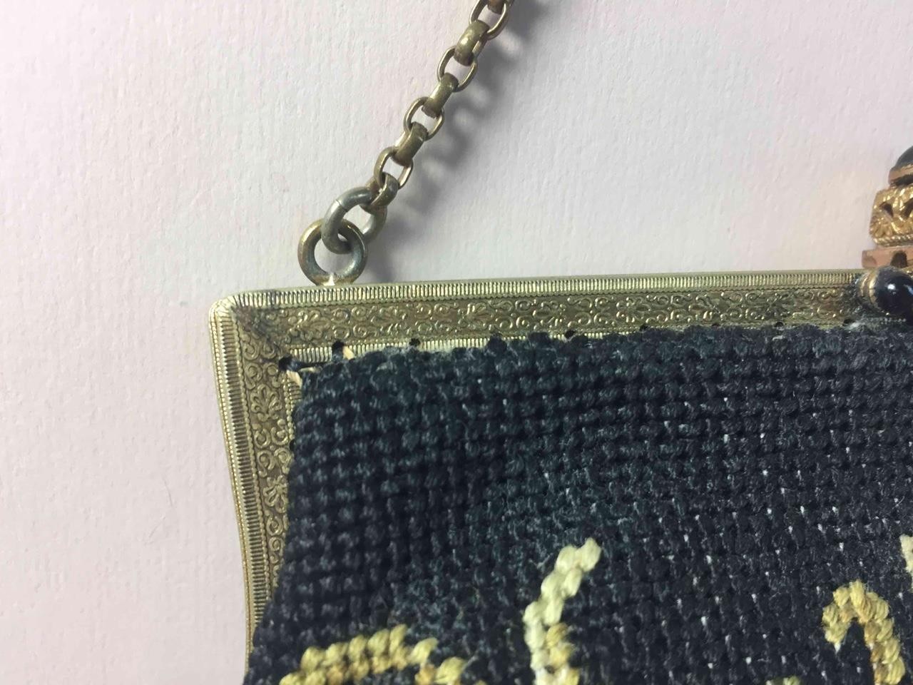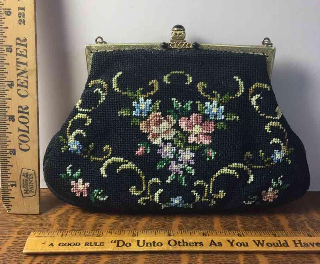 Vintage Tapestry Needlepoint Purse Floral Design Chain Handle Mirror Insert