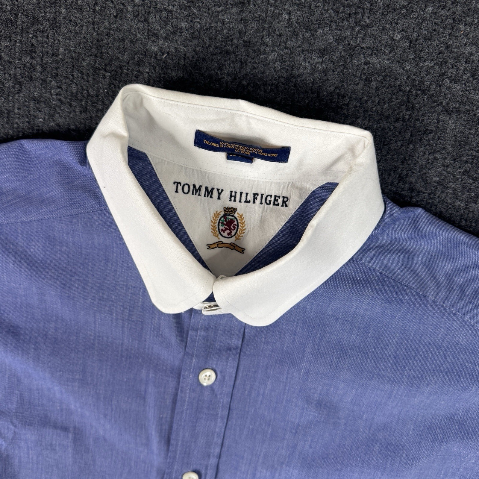 как выглядит Vintage TOMMY HILFIGER Shirt Mens 15.5 35 Button Up Cuffs EUC White Collar фото