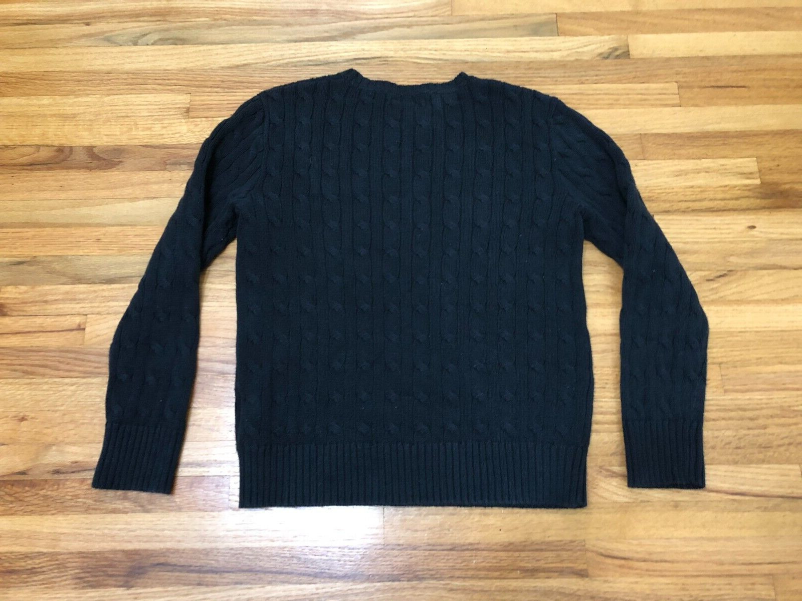 как выглядит Polo Ralph Lauren Pullover Sweater Boys M Black Cable-Knit Pony Logo Embroidered фото