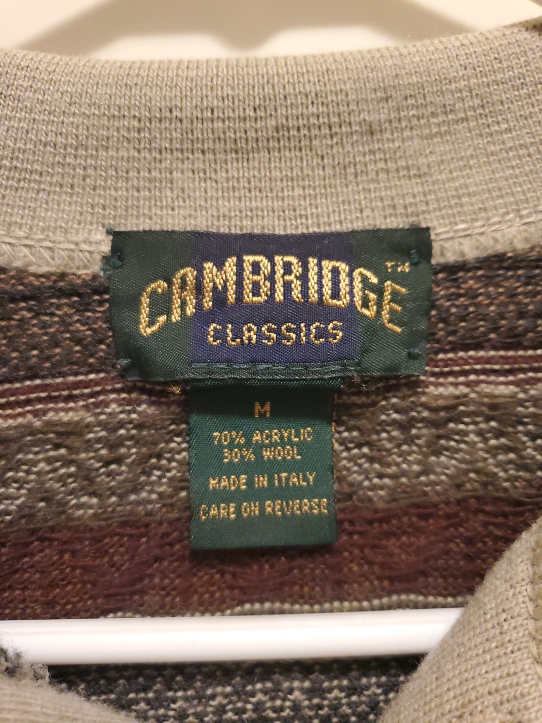 как выглядит Vintage 90s Cambridge Classics Brown Pattern Wool Blend Collared Sweater Size M фото