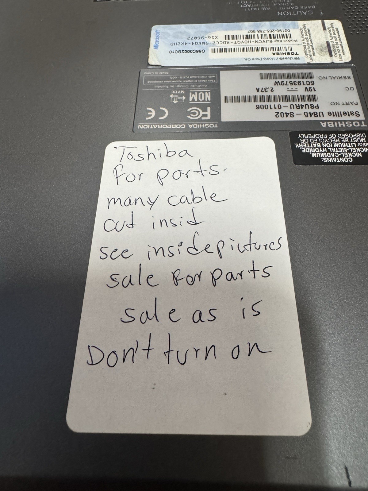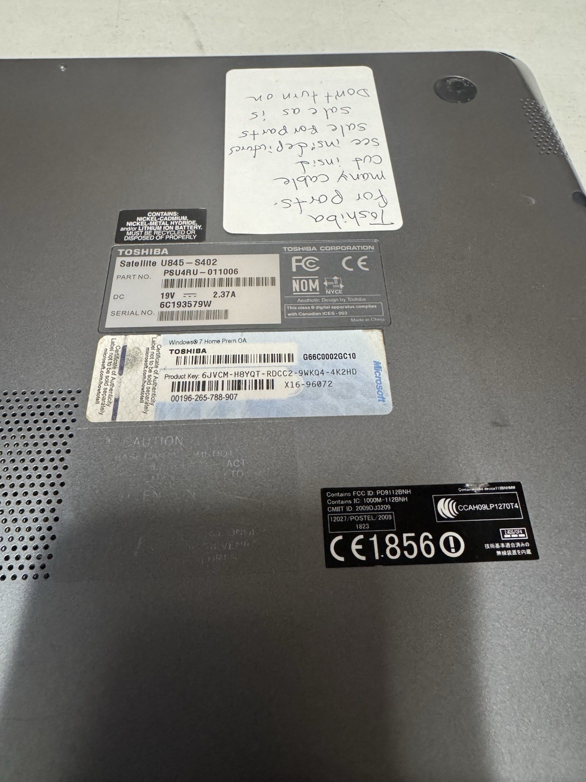 Toshiba Satellite U845-S402 i3 Laptop For Parts Repair No Power As-Is