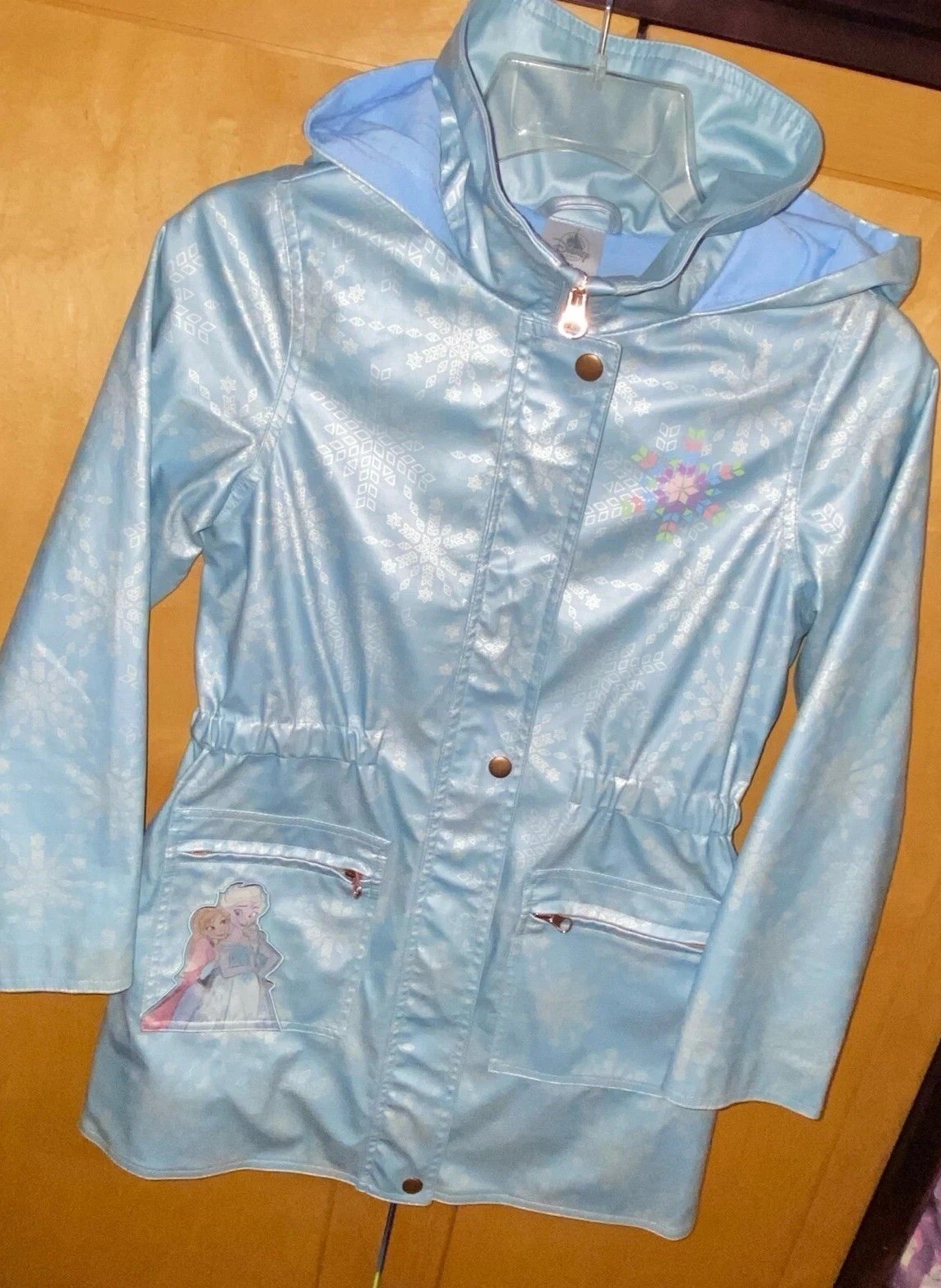 NWOT Disney Store Girl's Frozen Blue Rain Jacket Coat Size 9/10 Anna Elsa