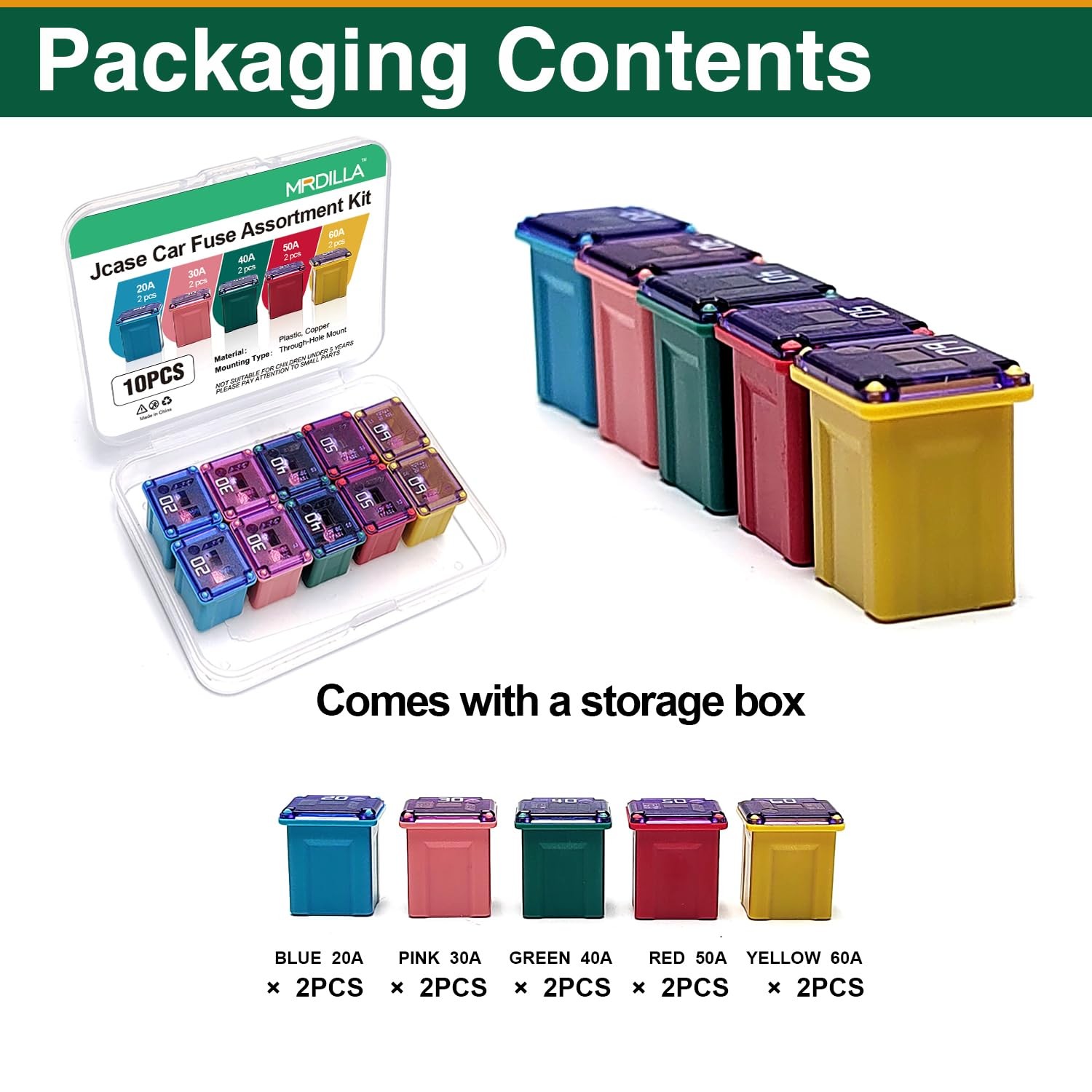 10Pcs Jcase Fuse Kit Car Fuses Assortment Kit Low Profile Box Shaped Automotive