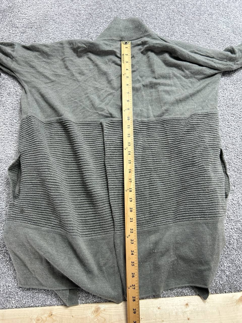 как выглядит Lululemon Sit In Lotus Wrap II Cardigan Sweater Women 6 Gray Wool Open Front фото