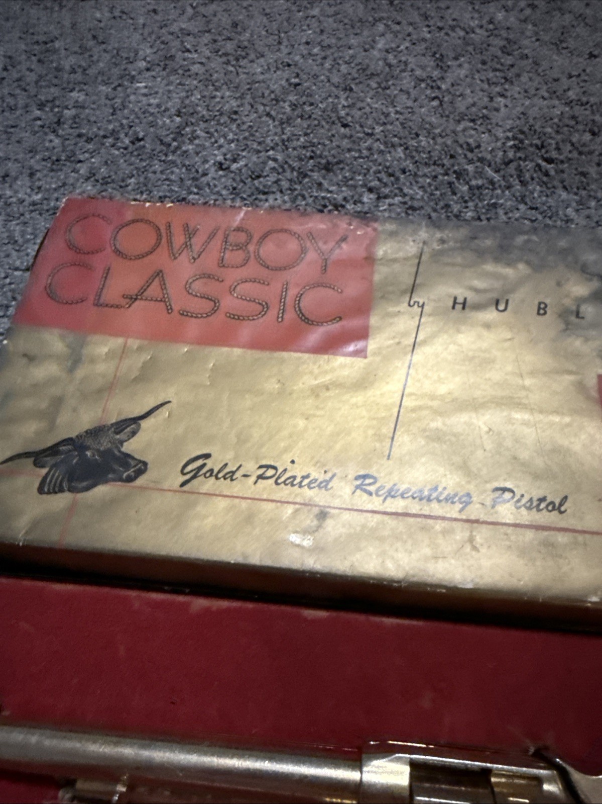 VINTAGE 1952 HUBLEY CLASSIC COWBOY REPEATING GOLD PISTOL CAP GUN In Box