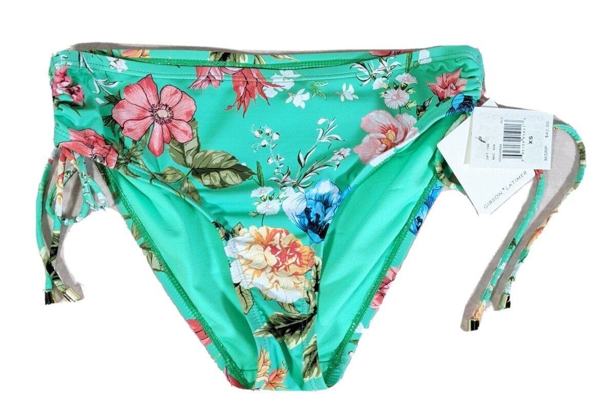 GIBSON LATIMER Women's Green Floral Tie Sides Stretch Bikini Bottom size XS NWT