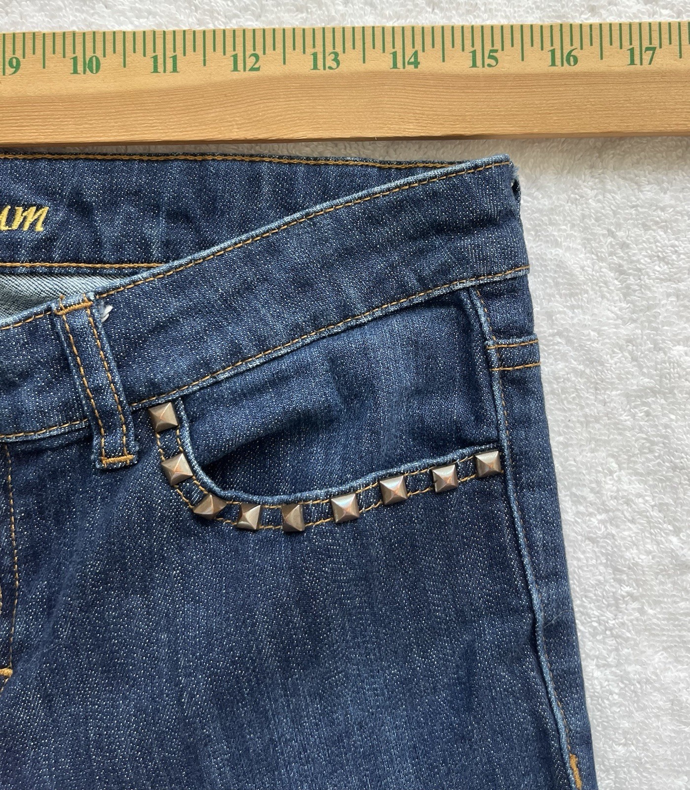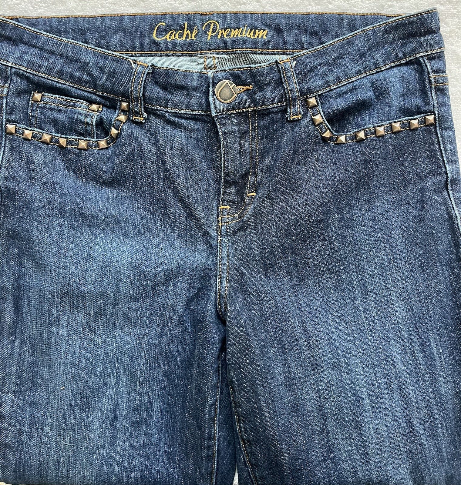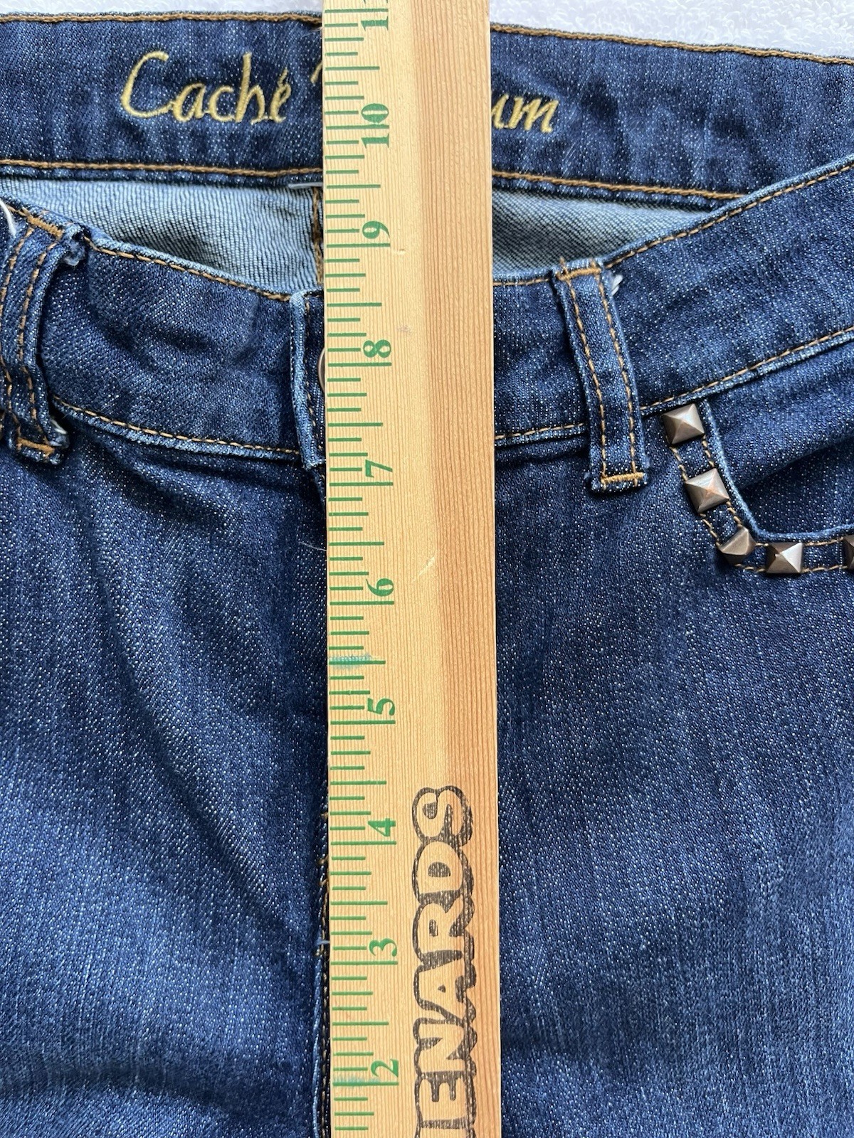 как выглядит WOMENS CACHE PREMIUM STRAIGHT LEG Studded Raw Hem JEANS SIZE 6 l 30.5 фото