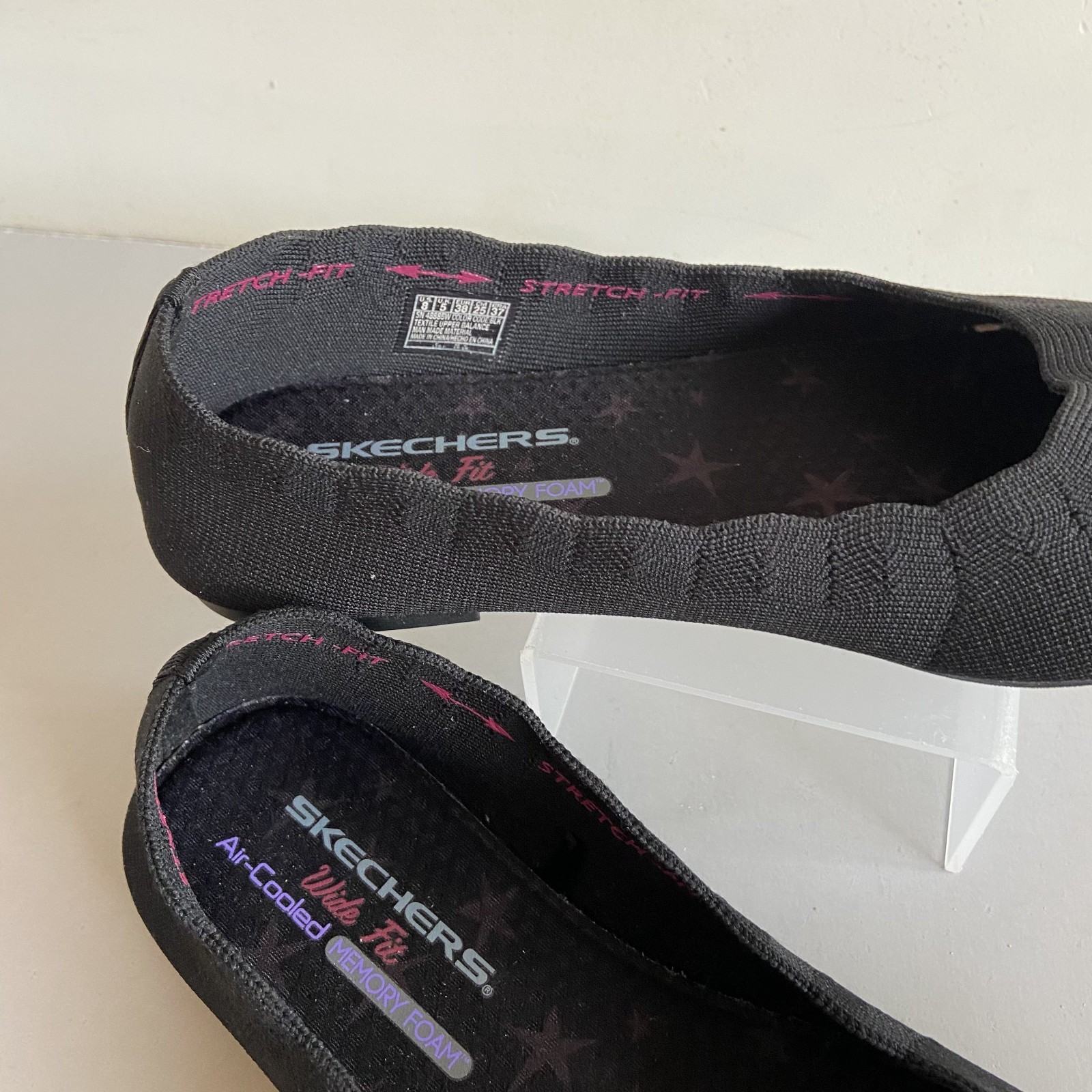 Skechers Shoes Womens Sz 8 W Cleo Bewitch Ballet Flats Black Comfort Knit 48885