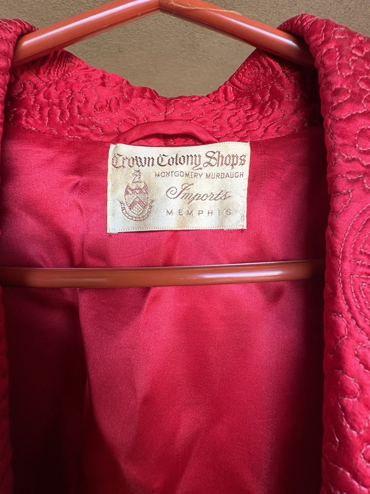 как выглядит Vintage Quality Silk Smoking Jacket Robe Scarlet Red Fringe Belt Asian Accent фото
