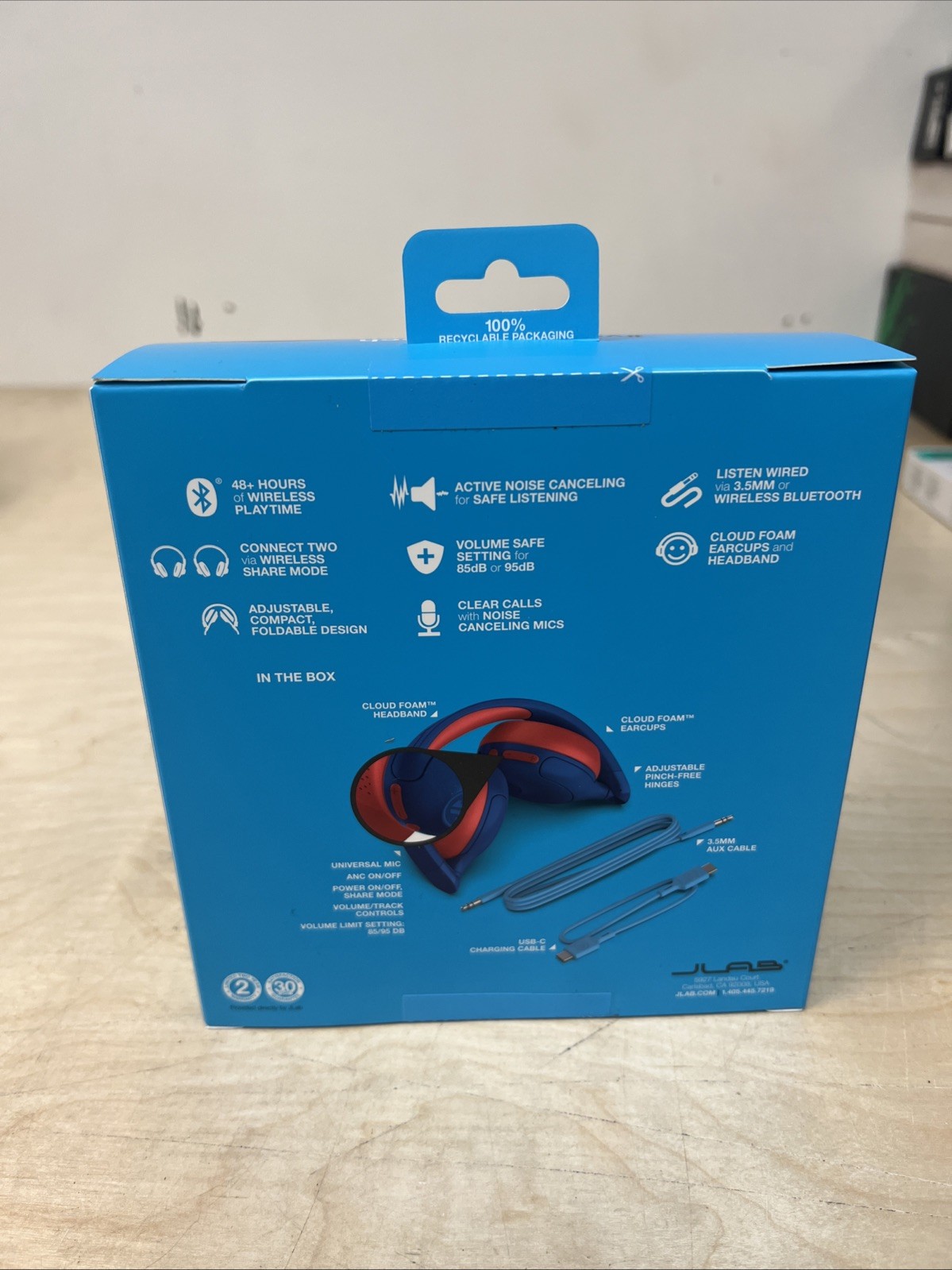 New Sealed - JLab JBuddies Bluetooth Wireless ANC Kids' Headphones - Blue/Red