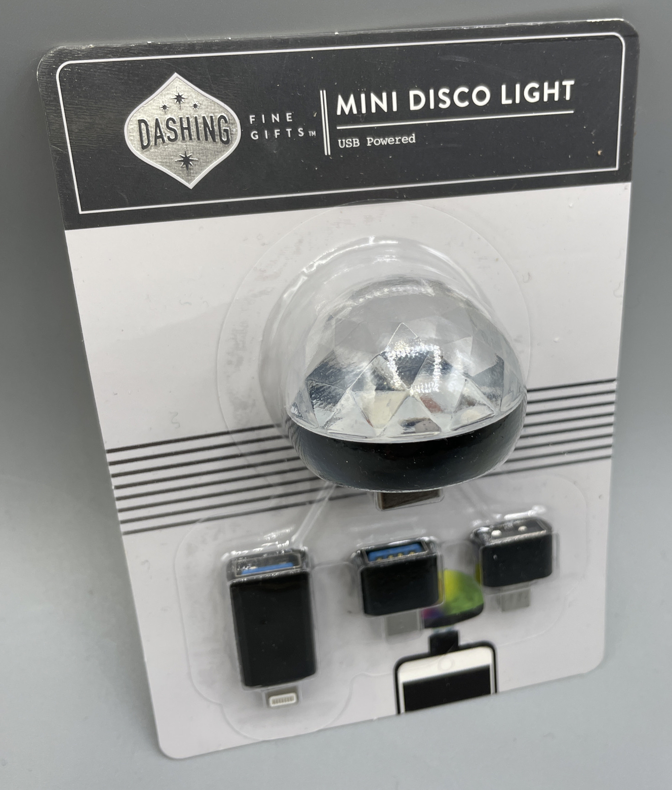 Mini USB Disco Light Ball w/ 3 Adapters Plug Play Party Gift Portable LED