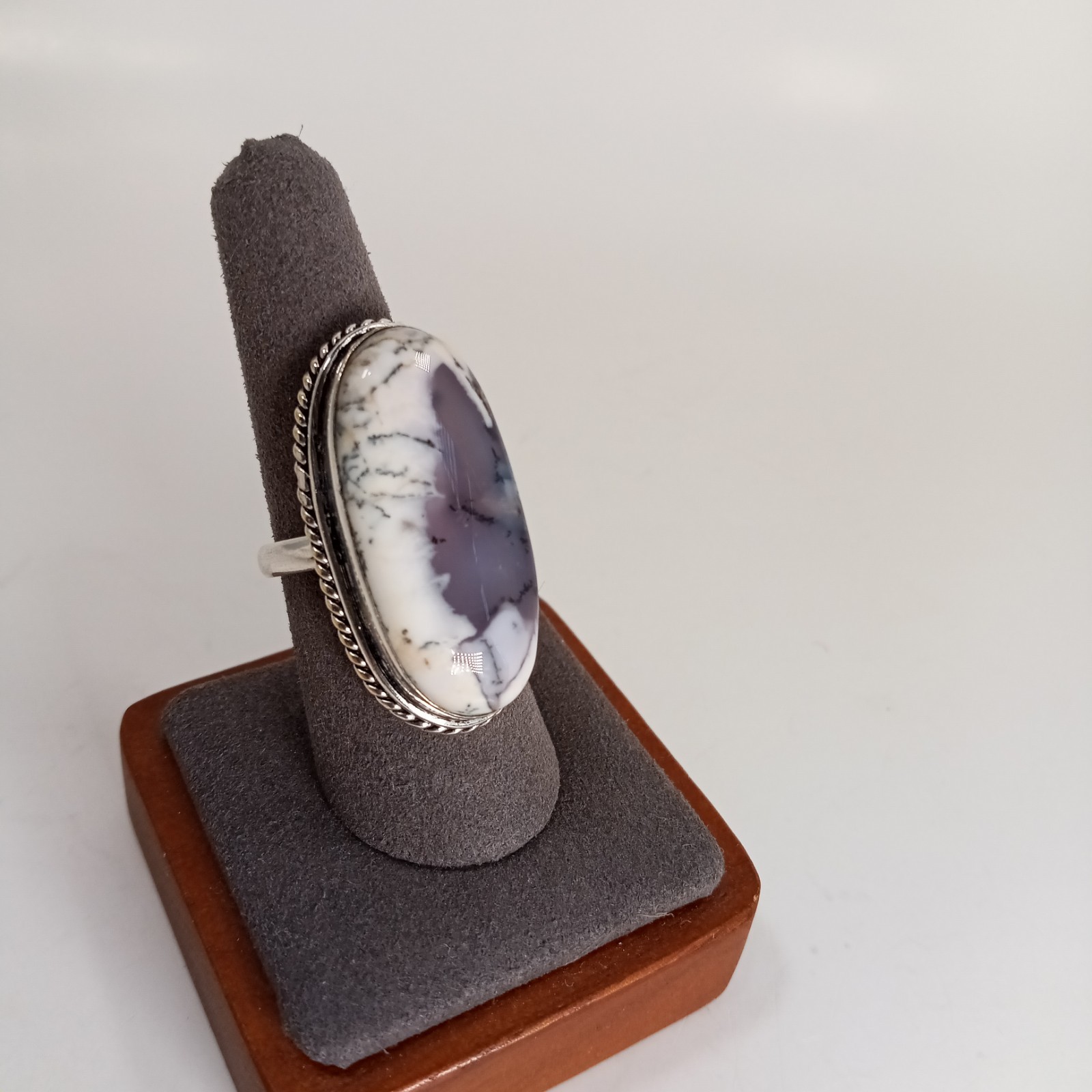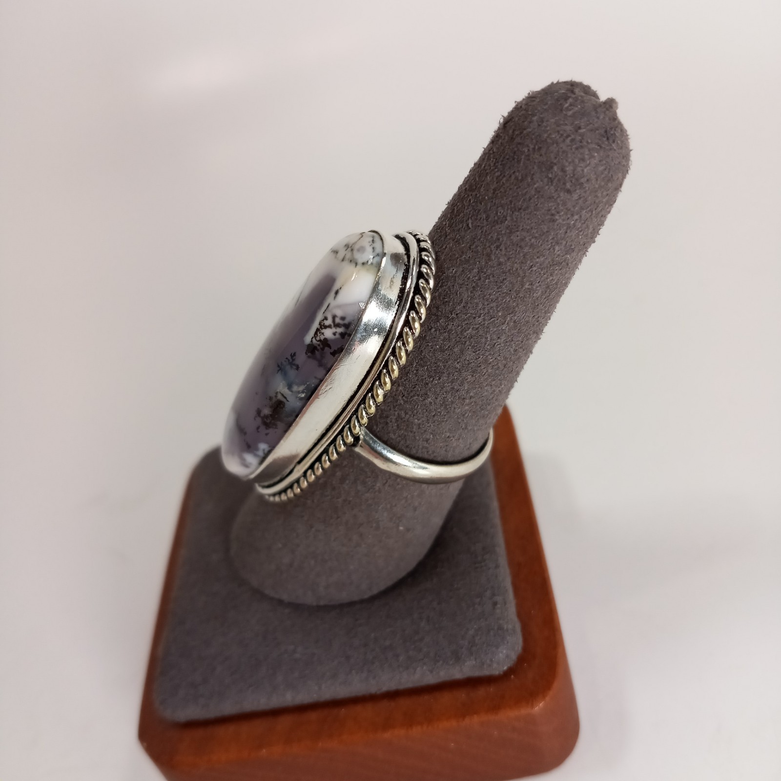 Artisan Crafted Sterling Silver 925 Oval Dendritic Opal Gemstone Ring Size 9
