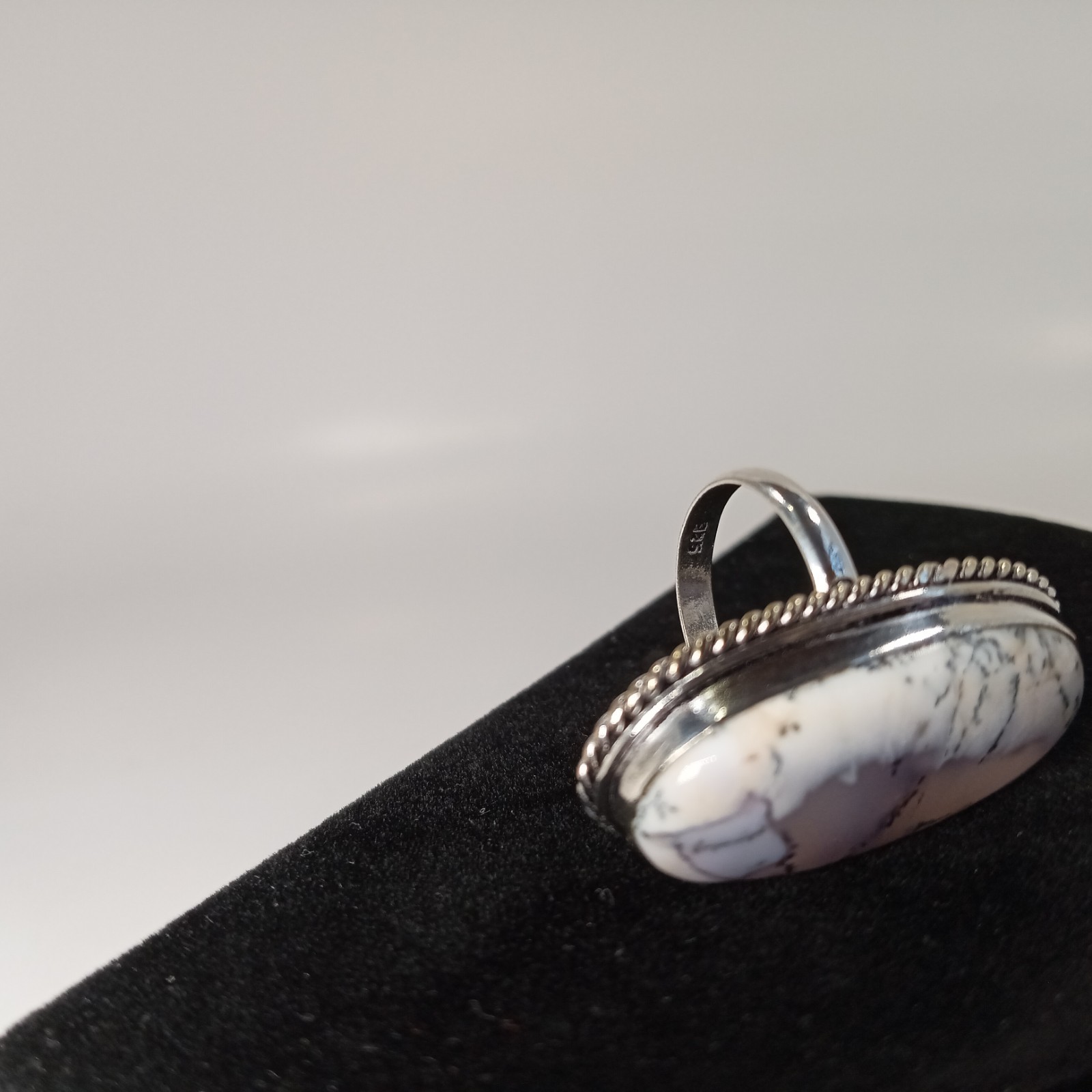 как выглядит Artisan Crafted Sterling Silver 925 Oval Dendritic Opal Gemstone Ring Size 9 фото