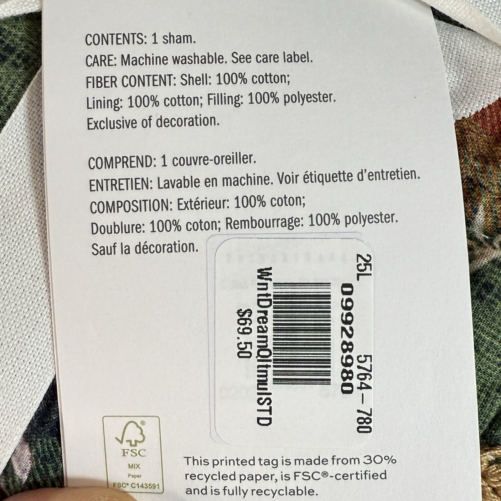Fill Material: 100% Cotton
