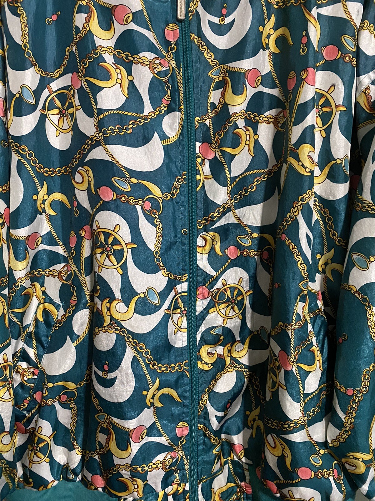 VTG Bovattini Sportwear Tracksuit Windbreaker Teal Gold Chain Design Women s XL