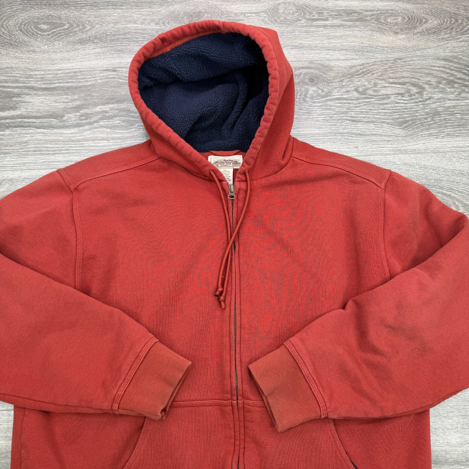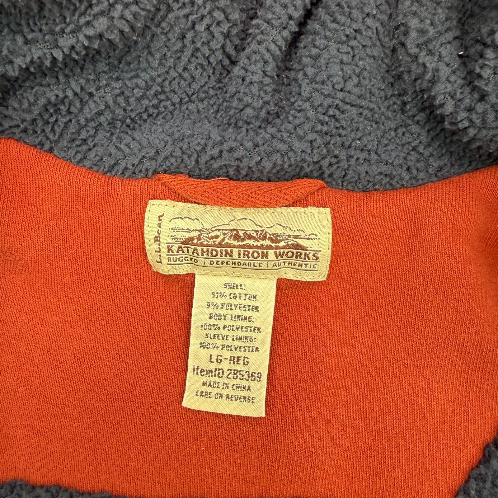 LL Bean Katahdin Iron Works Jacket Mens Large Red Hoodie Sherpa Fleece Lined Zip