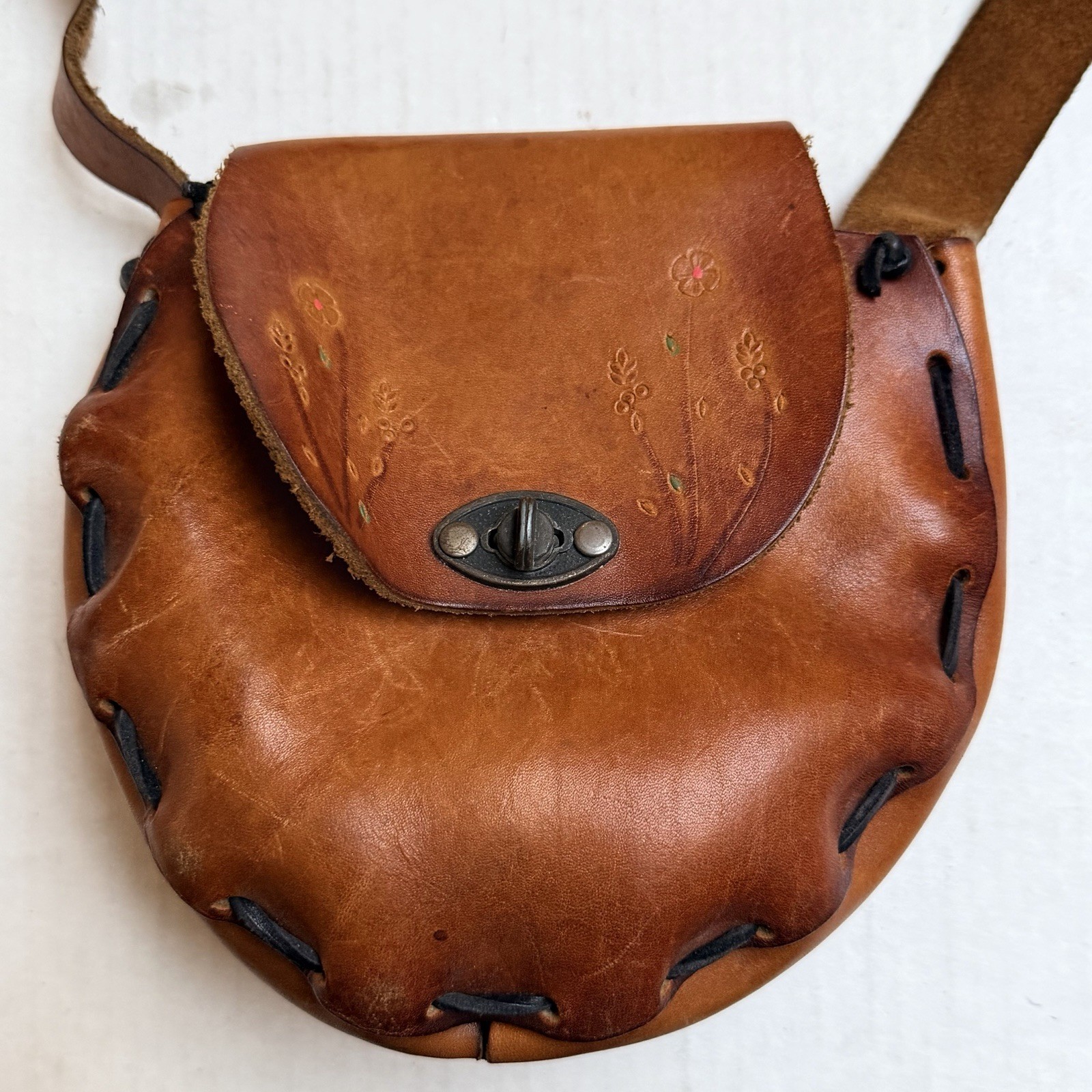 Vintage Hand Tooled Leather Purse Shoulder Bag Hippie Boho Bag Festival