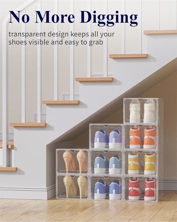 как выглядит Kitsure Large Thicken Sturdy Shoe Boxes - 9 Pack White Clear Plastic Stackable фото