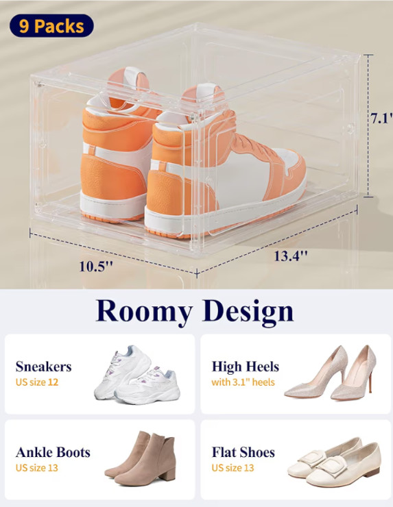 Kitsure Large Thicken Sturdy Shoe Boxes - 9 Pack White Clear Plastic Stackable