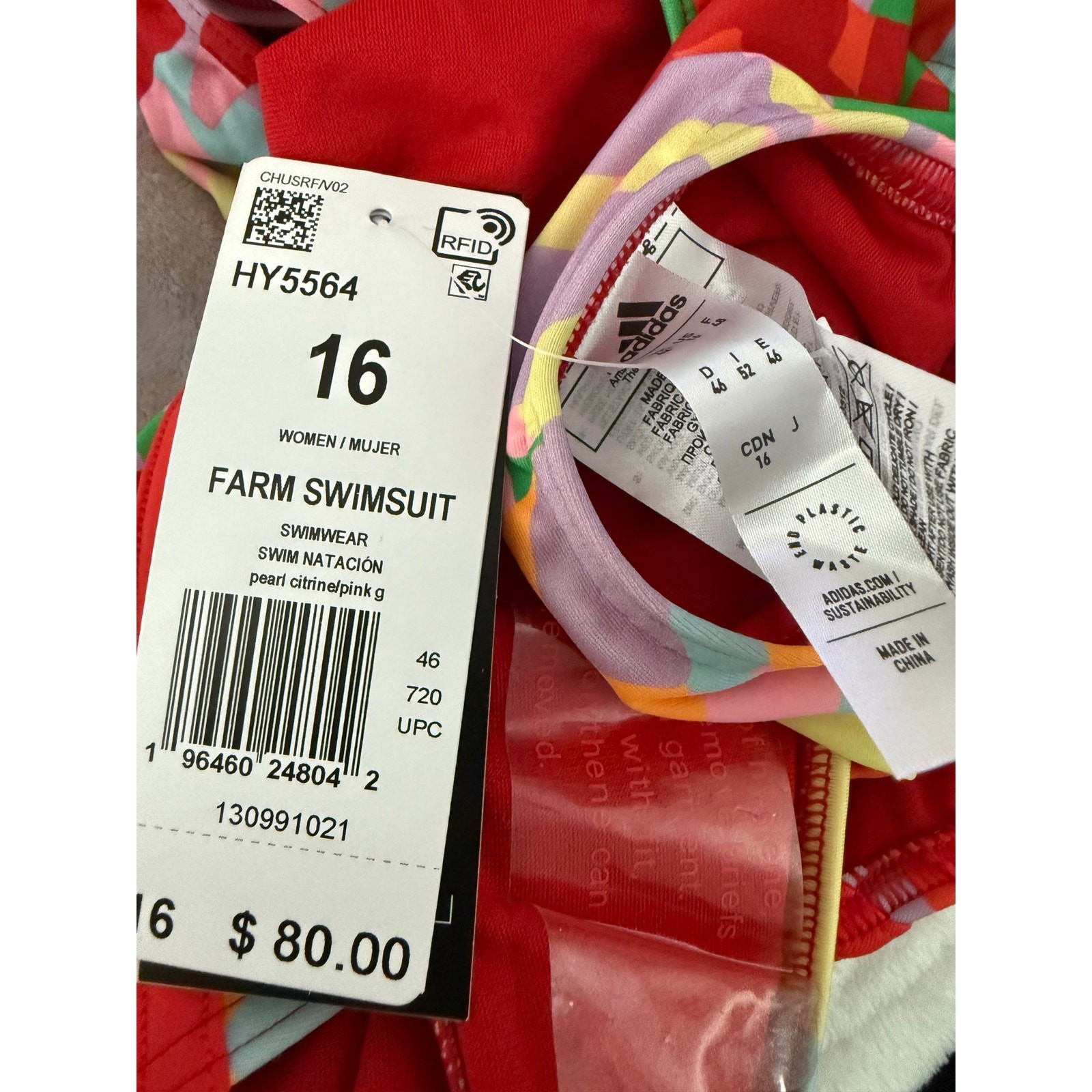 NWT Adidas x Farm Rio Pearl Citrine One Piece Swim Bathing Suit Women's Size 16