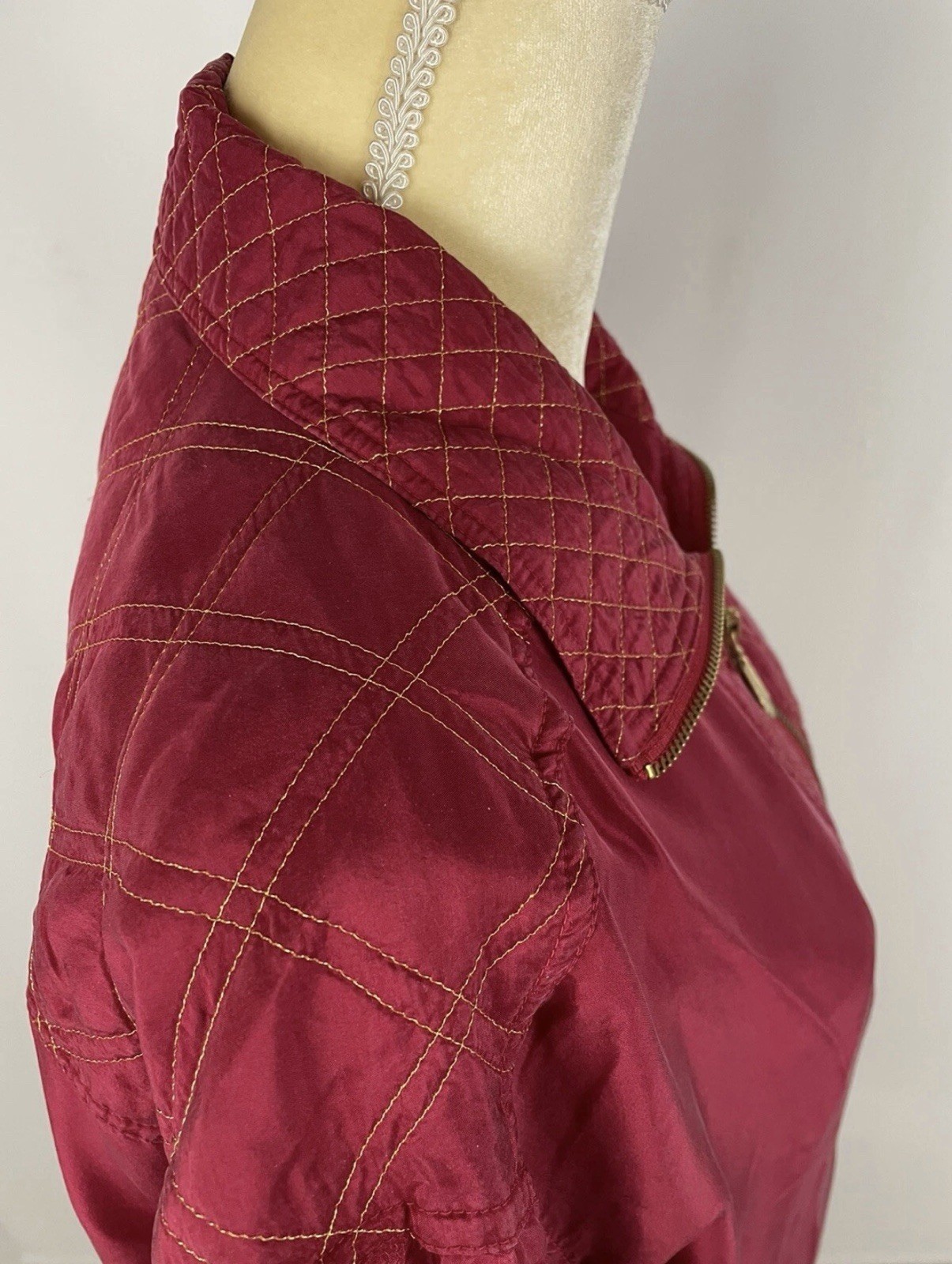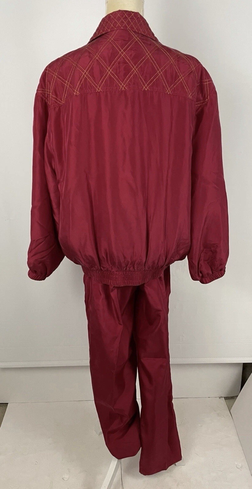 Vtg 80s 90s 100 Silk Windbreaker Track Suit Red Gold Jacket Pants Womens Medium