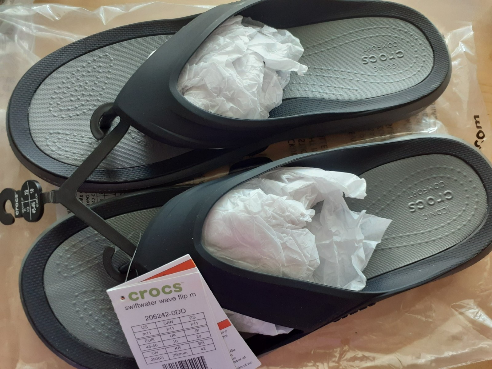 Crocs Swiftwater Wave Flip Flops/Sandals, Black Slate Grey, Men's Size 8, New