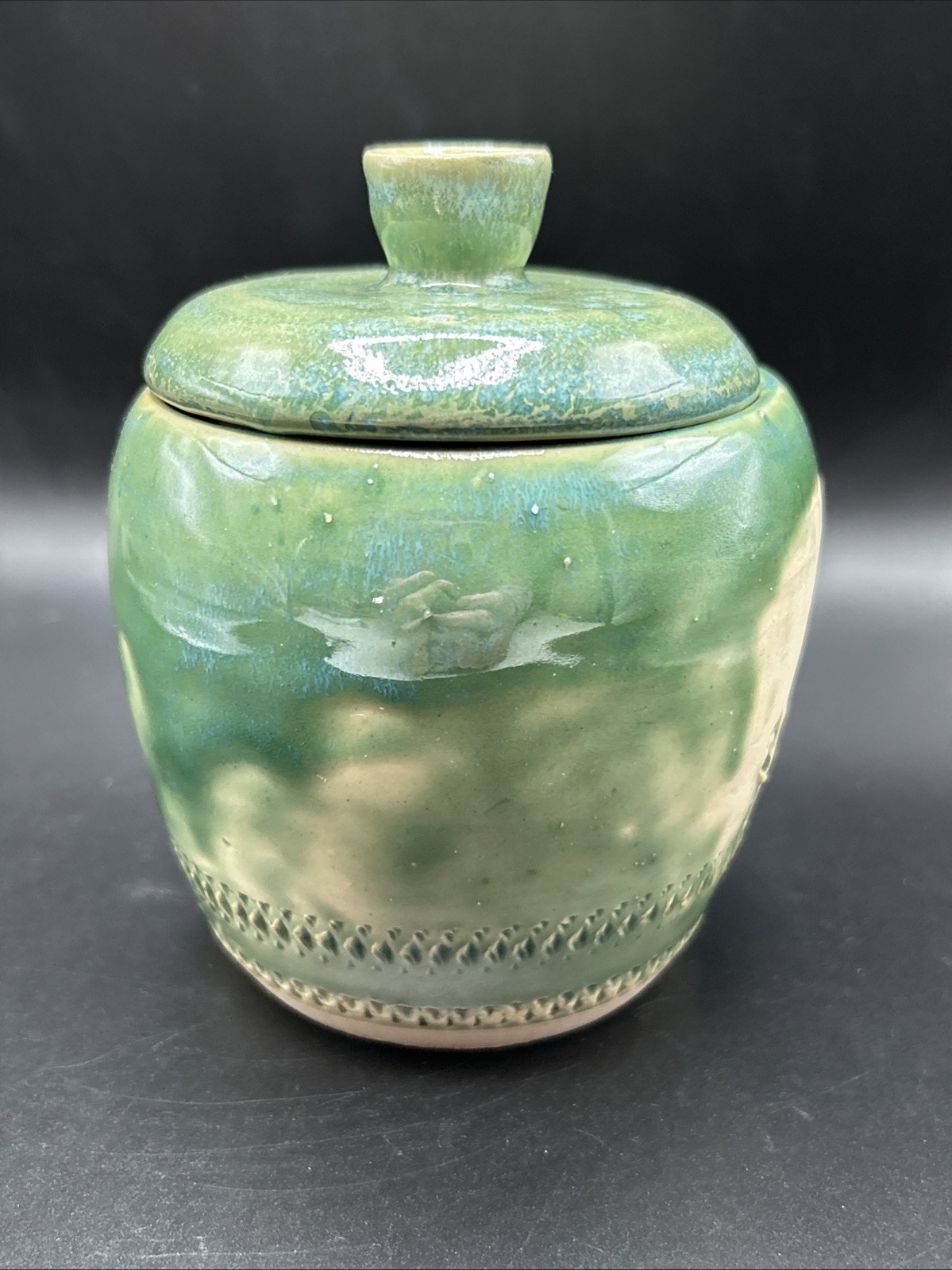 PET URN Hand Made Thrown Pottery For Ashes Memorabilia 4 Wide 3 1/2 Tall