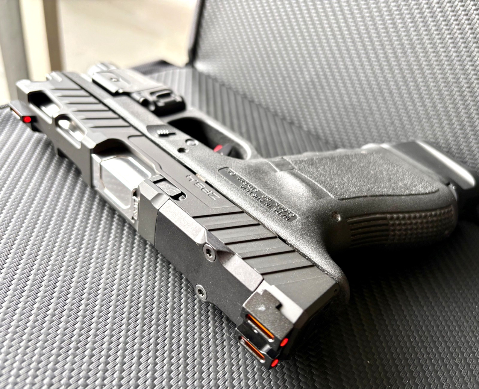 Особенности: Reduced Recoil, Lightening cuts, Trijicon RMR Optics Cut, Fiber Optic Sights, Zaffiri Precision Fluted Match Barrel, Flush and Crown Cut Barrel, Holosun Optics Cut