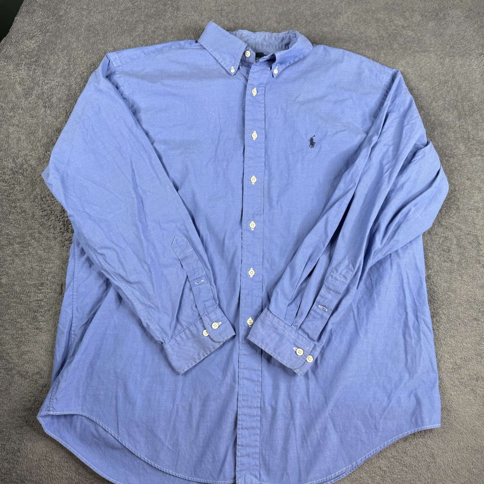 RALPH LAUREN Dress Shirt Men 17-36 Blue Yarmouth Oxford Pony Designer
