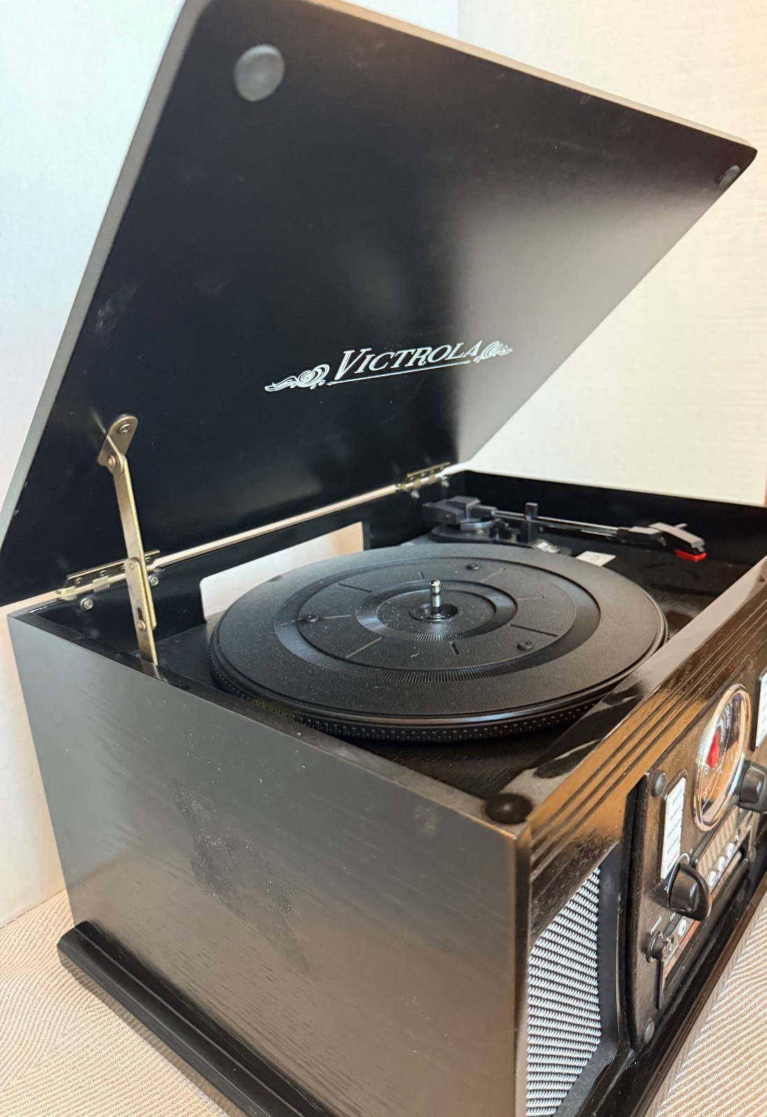 как выглядит VICTROLA Retro Vinyl, CD, and Cassette Player with Radio Remote - Tested Works фото