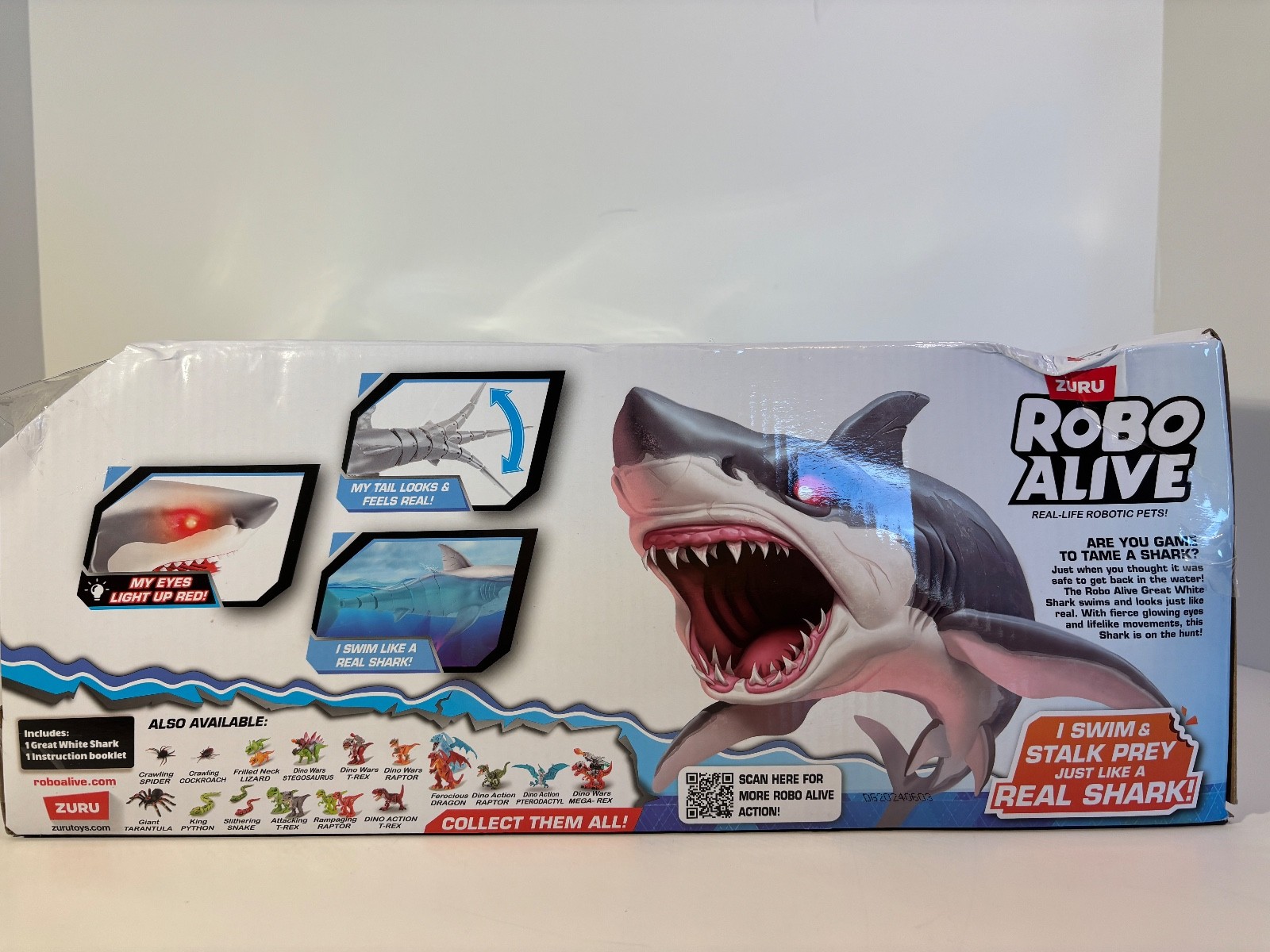 Robo Alive Great White Shark Toy Figure Water Activated Light Up Eyes Box Damage