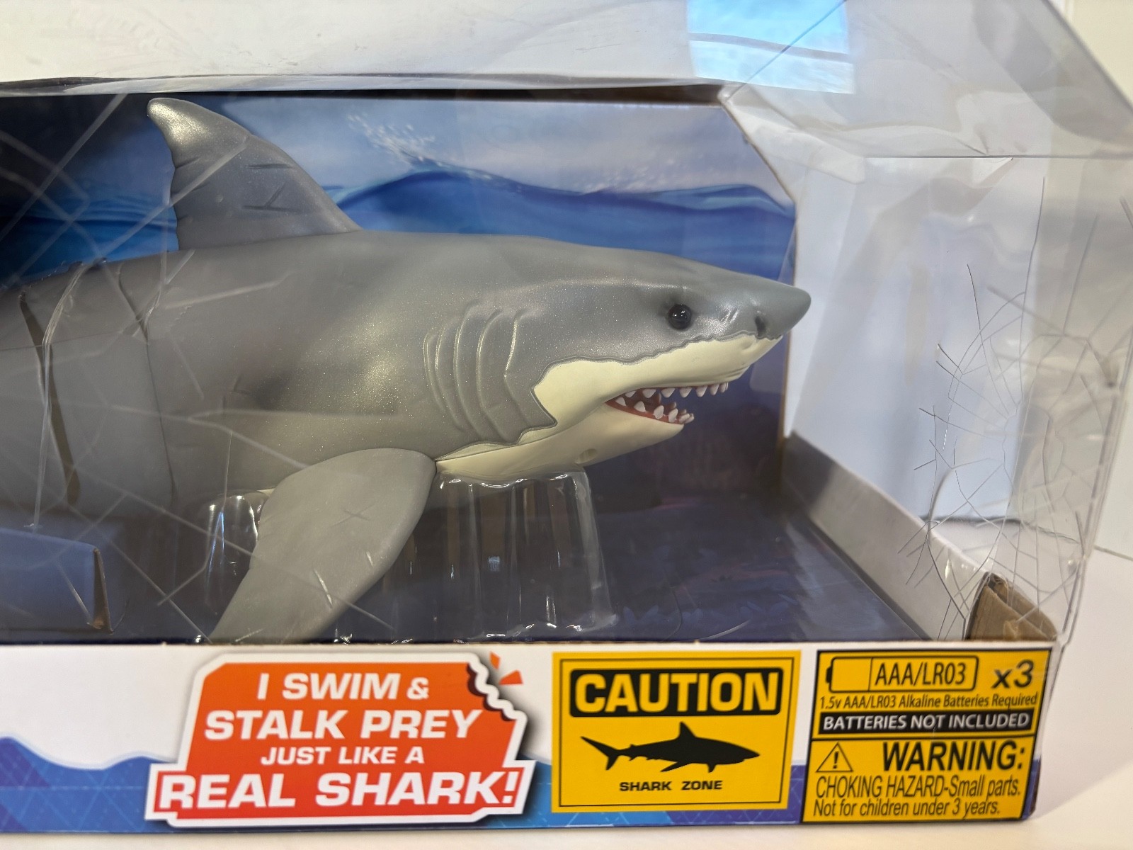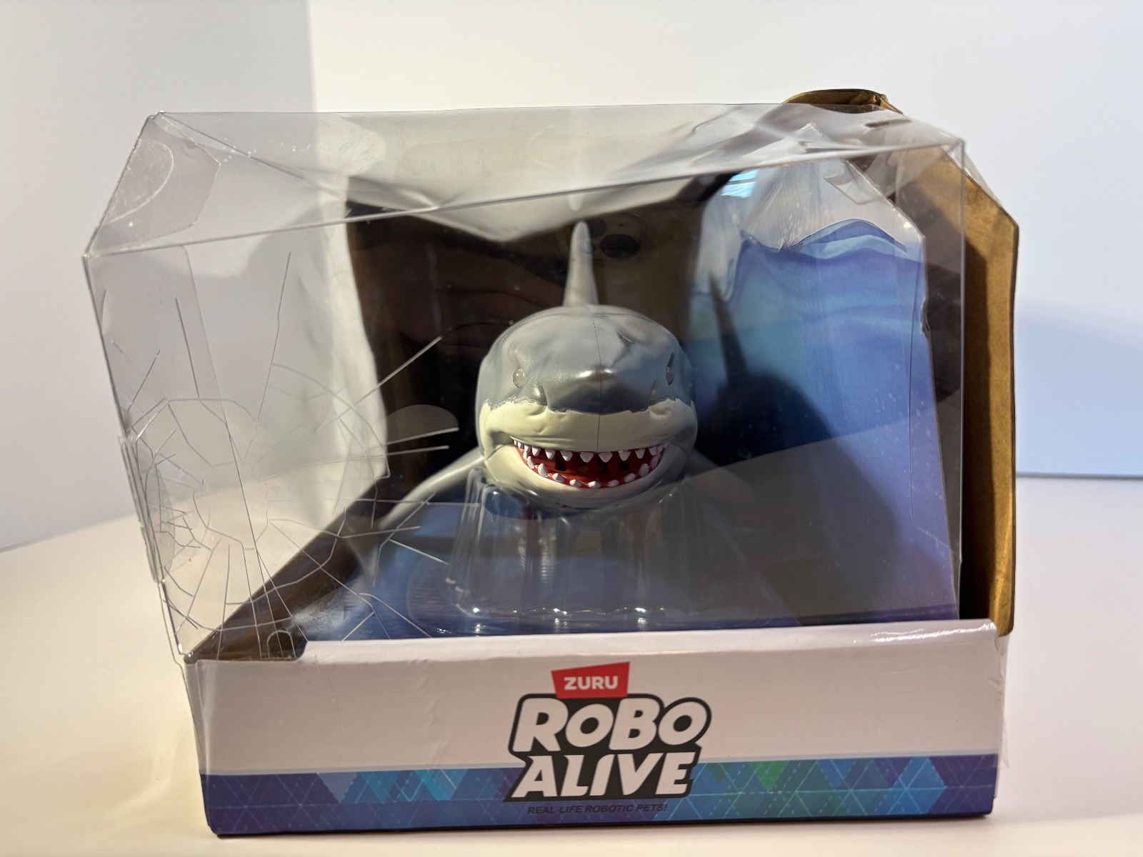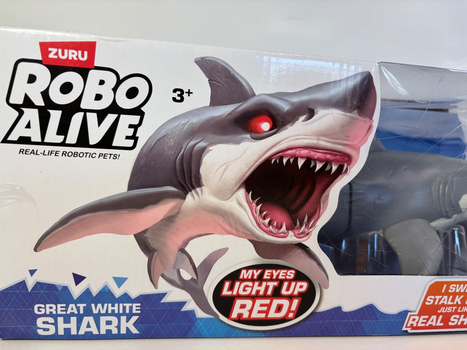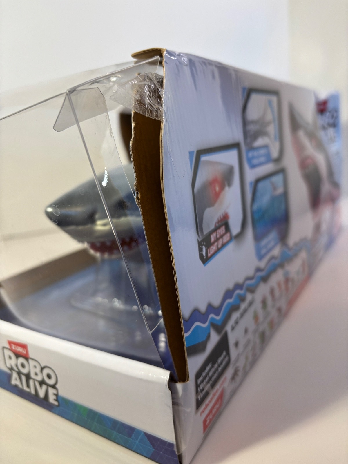 как выглядит Robo Alive Great White Shark Toy Figure Water Activated Light Up Eyes Box Damage фото