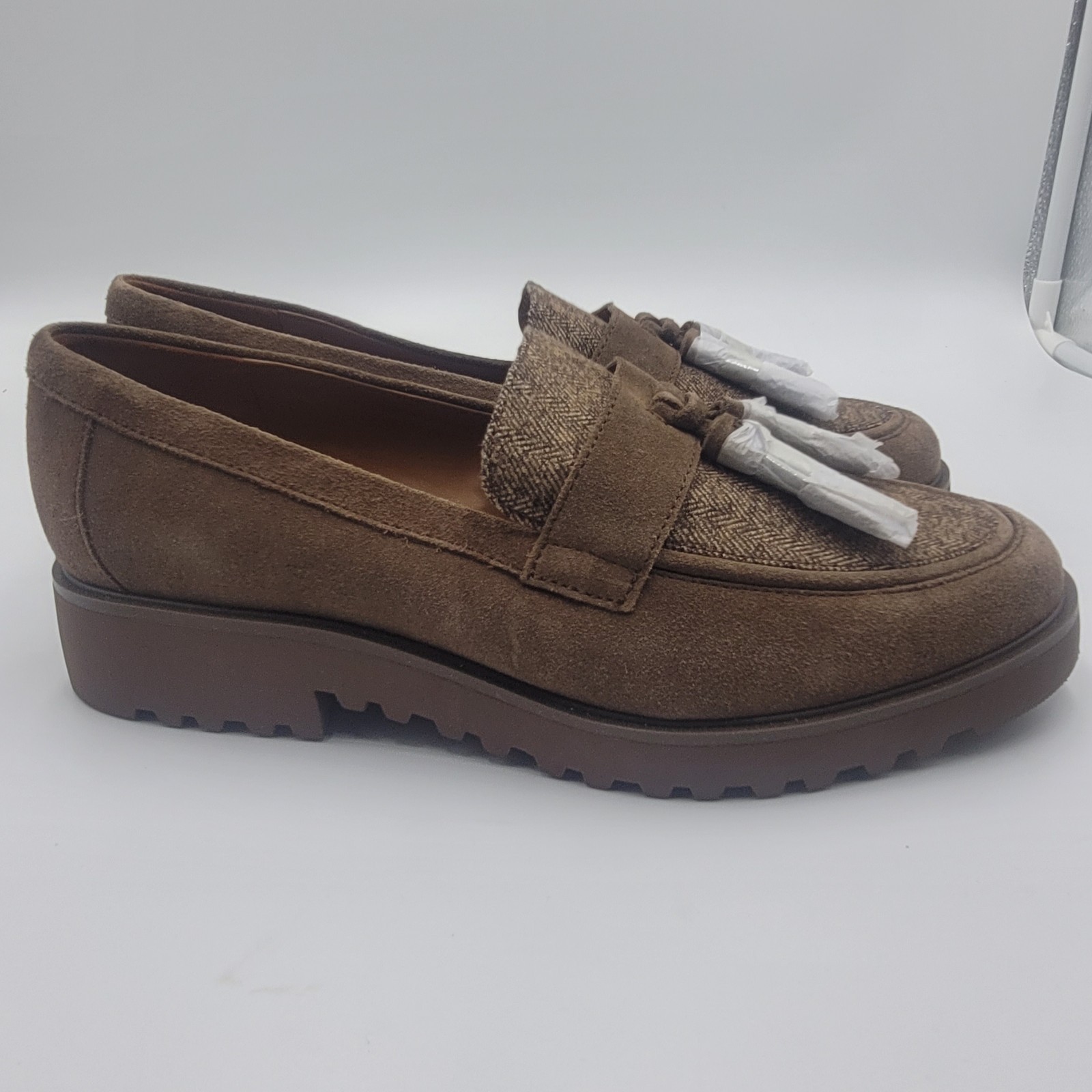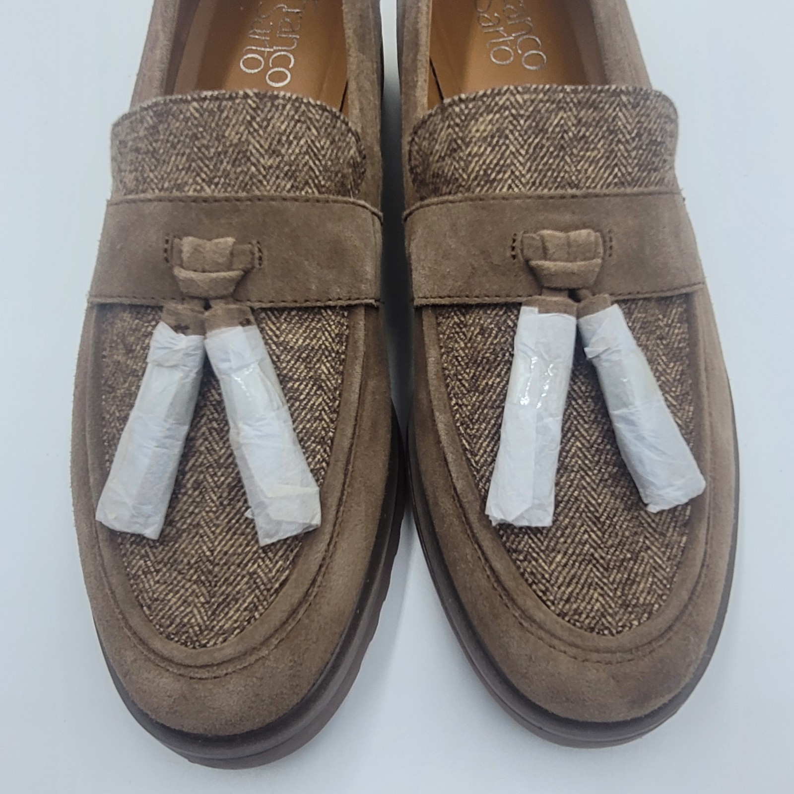 Franco Sarto Carolynn Tassel Loafers Brown Suede Leather Fabric Women Sz 8.5 NEW