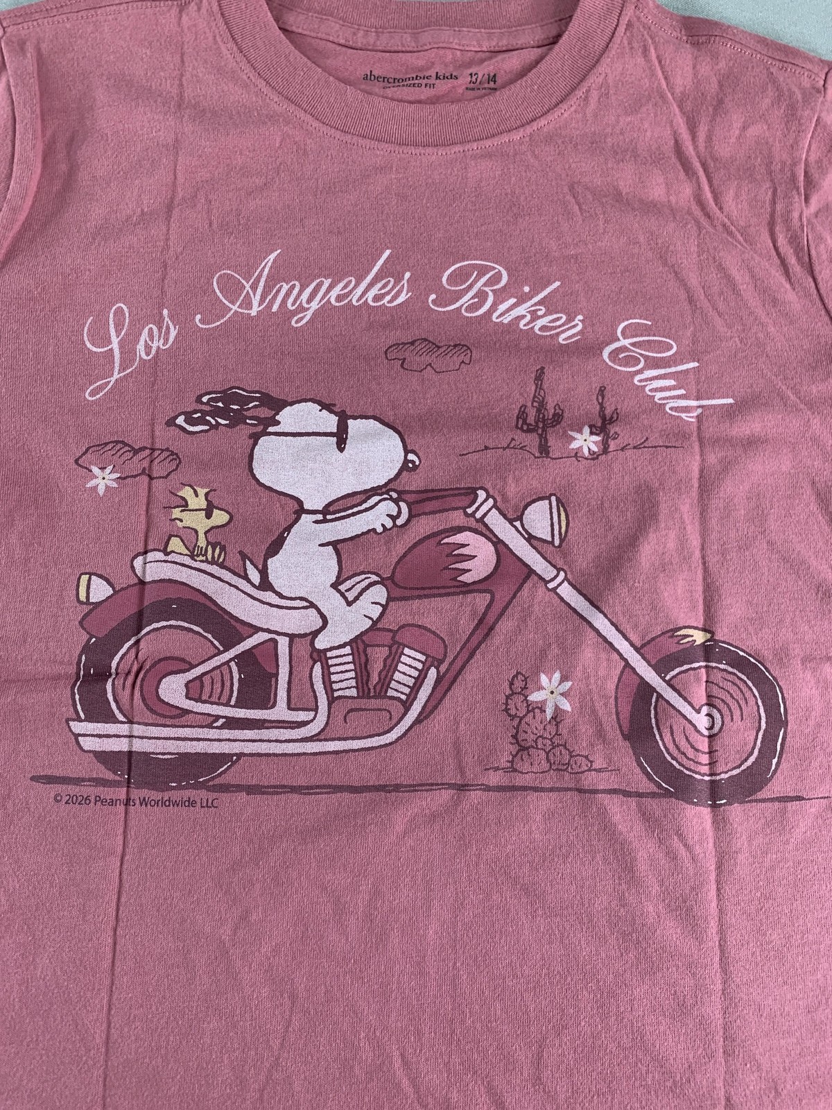 Abercrombie Kids Shirt Youth 13/14 Pink Snoopy Los Angeles Biker Club Oversized