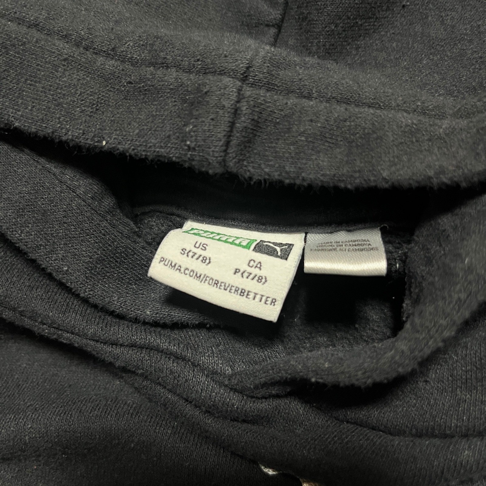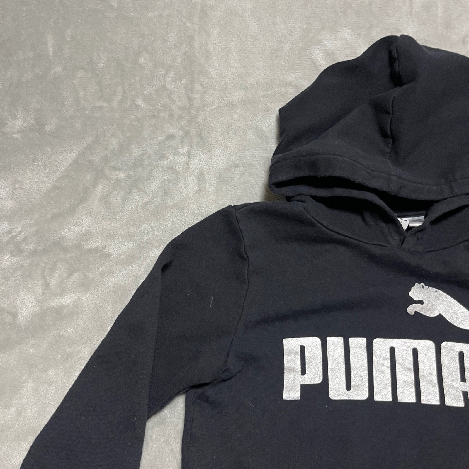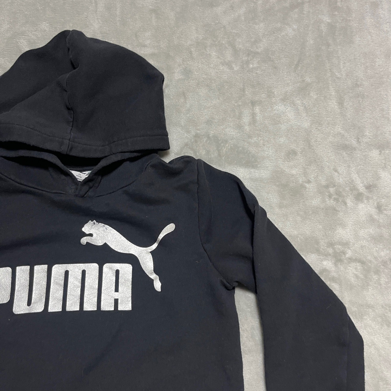 Puma Kids Black Hoodie with White Logo Girls Size Small 7/8