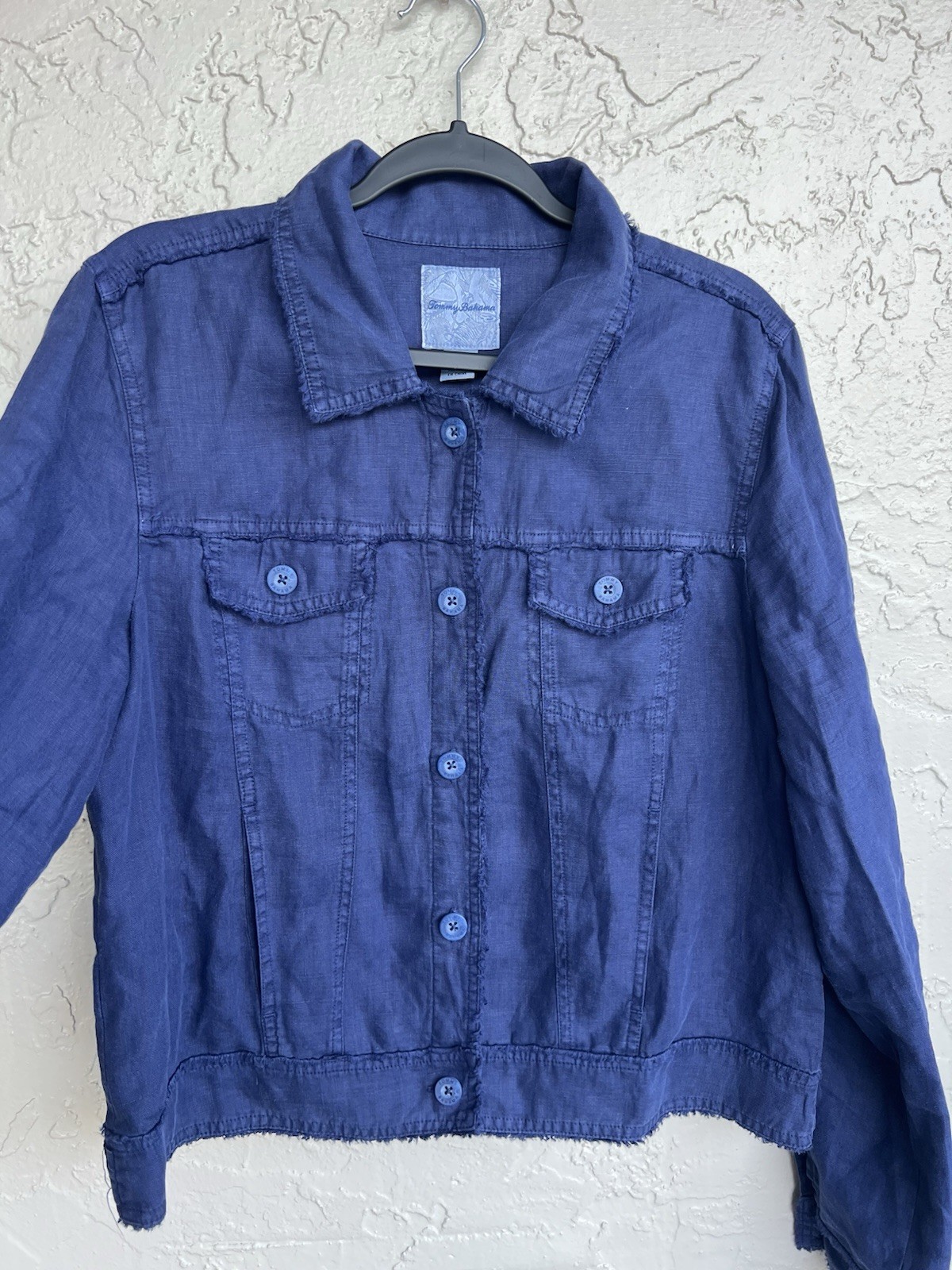 как выглядит Tommy Bahama Navy Blue Linen Raw-Edge Jacket Coastline Size L фото