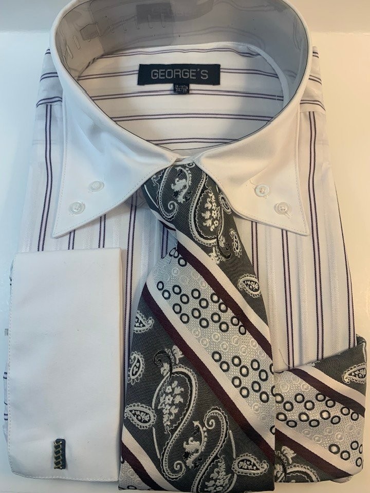 New Men's Dress Shirt With Tie/Hankie/ French Cuff Set Free Dress Socks