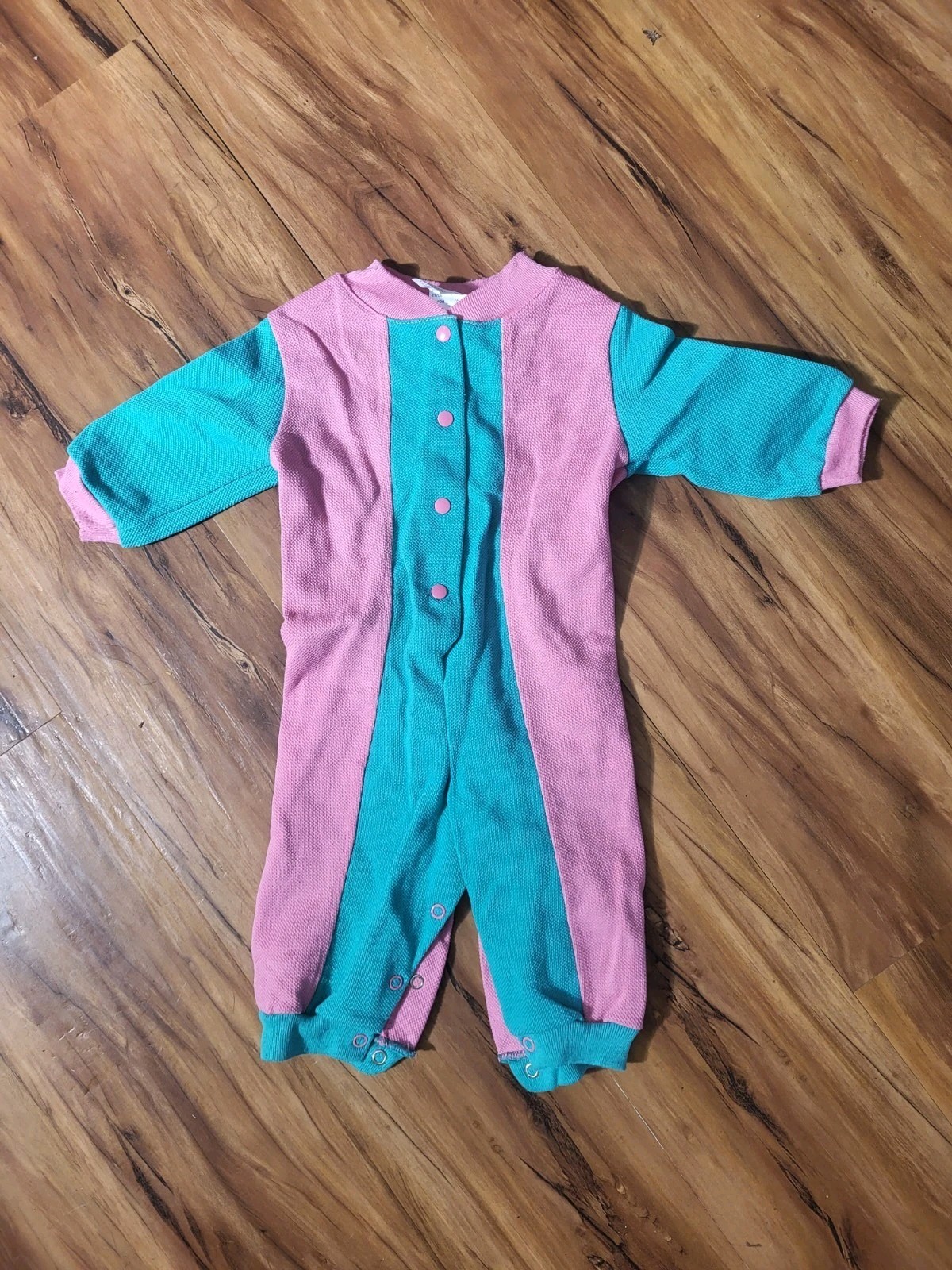 как выглядит Vintage Izod Lacoste Pink And Teal Baby Romper, One-Piece, Size 6-9 Months фото