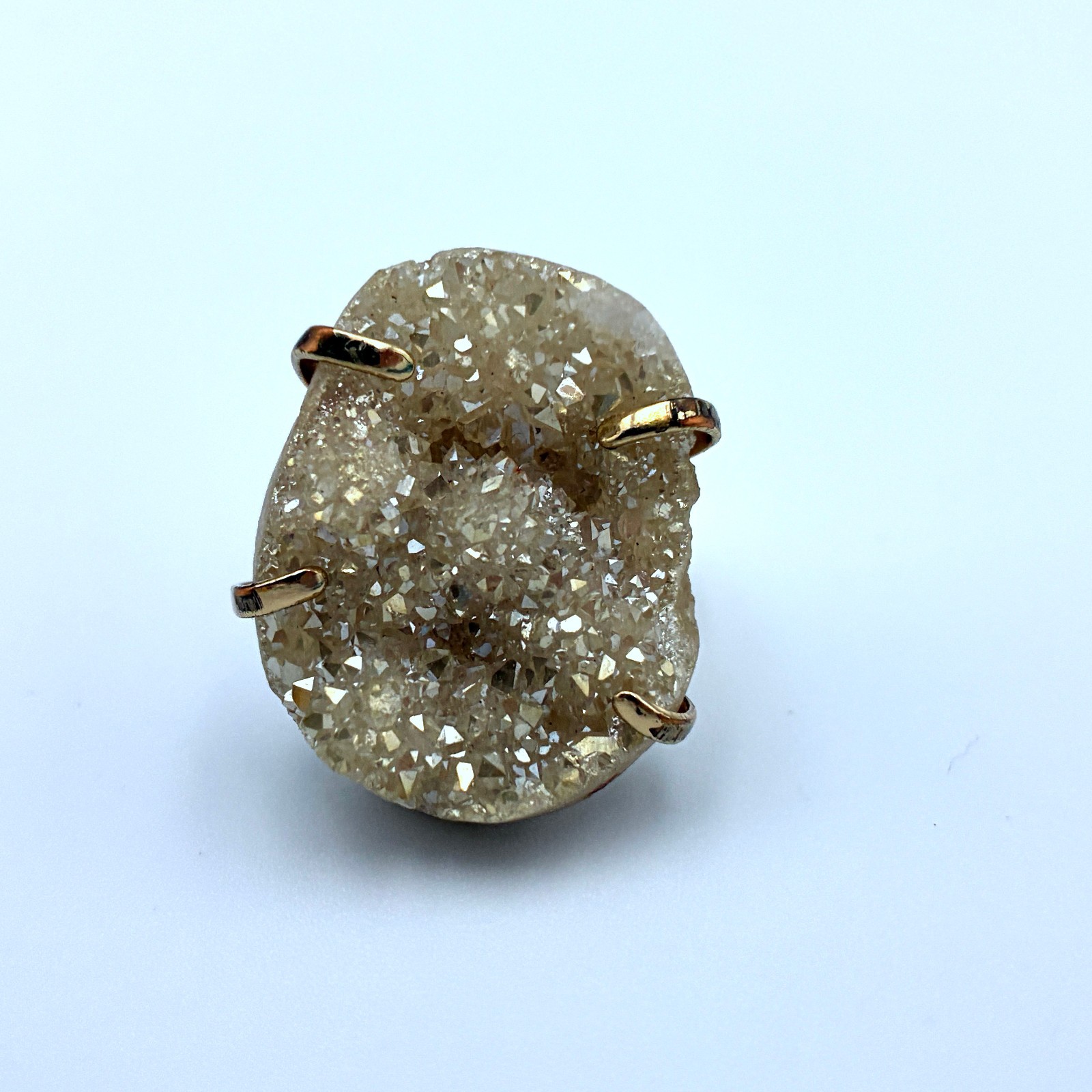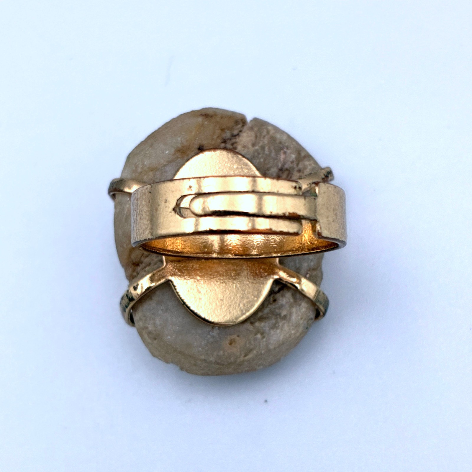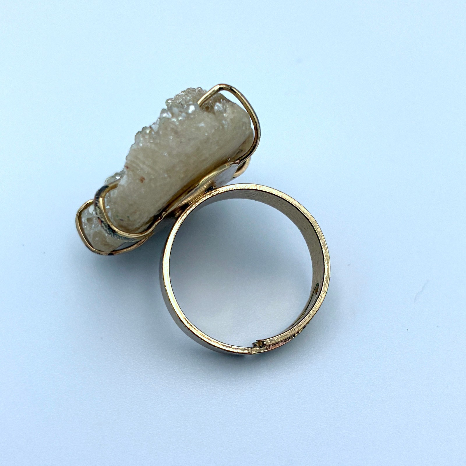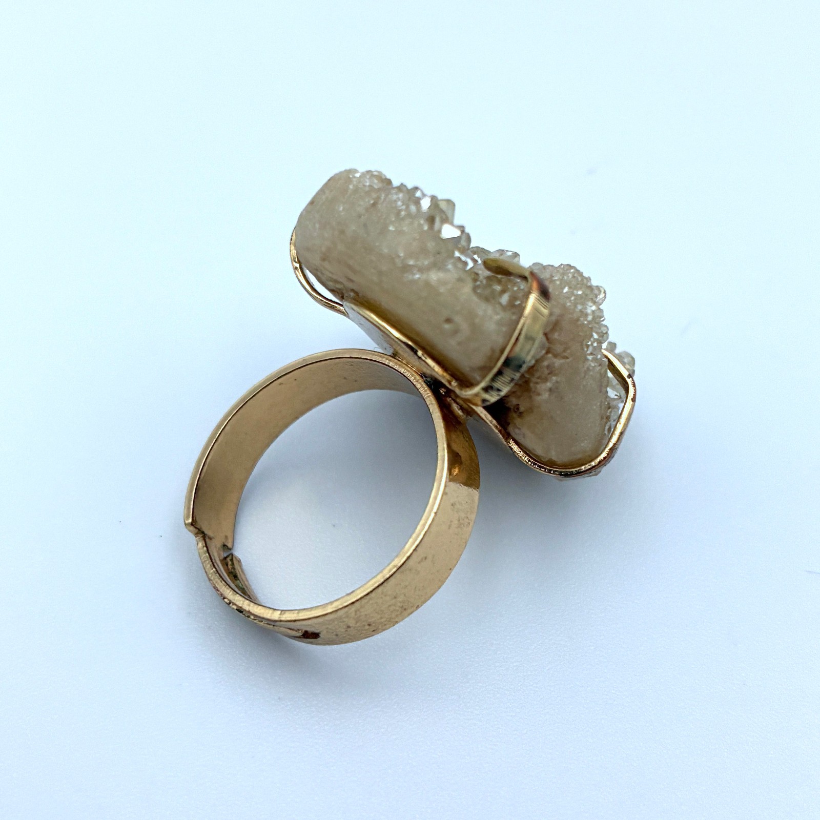 Adjustable Geode Quartz Druzy Ring Gold Tone